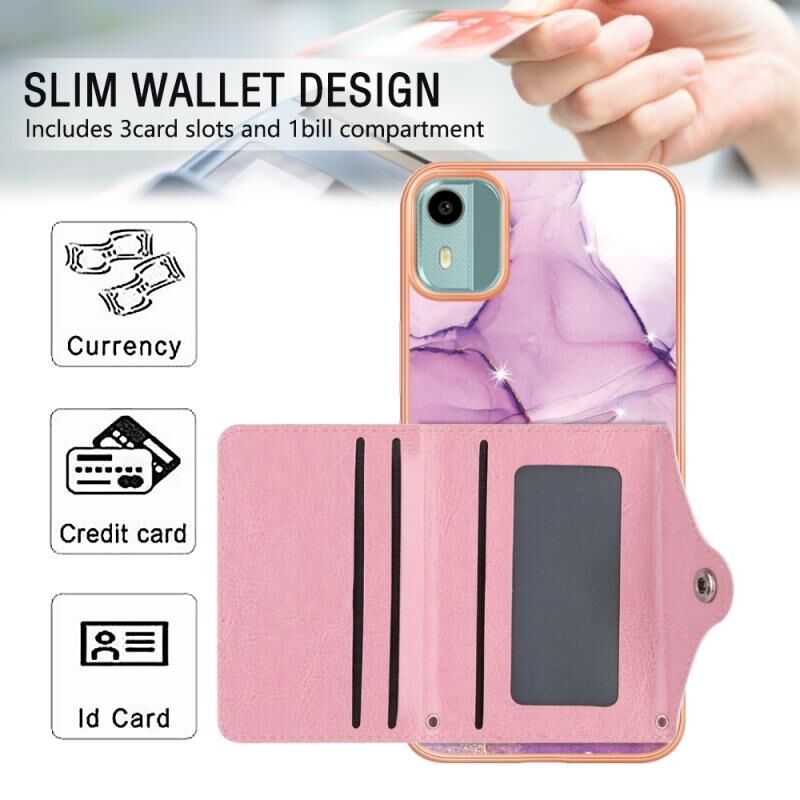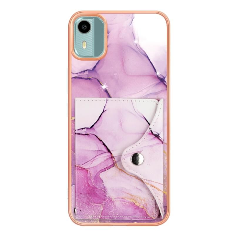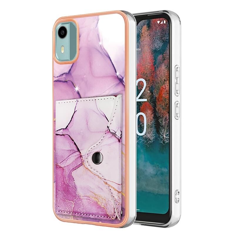 Θήκη κινητού τηλεφώνου Nokia C12 με σχέδιο μαρμάρου IMD και θήκη κάρτας (Λευκό Γαλαξιακό Μάρμαρο)
