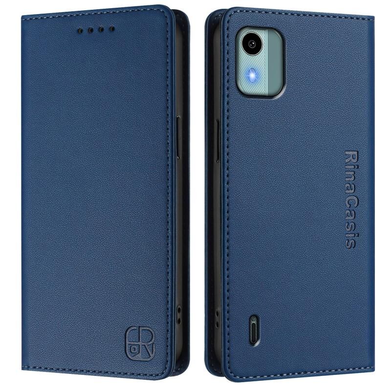 Θήκη τηλεφώνου δερμάτινη με μαγνητική απορρόφηση και διπλή πτυχή για Nokia C12 RC01 (Μέντας Πράσινο)