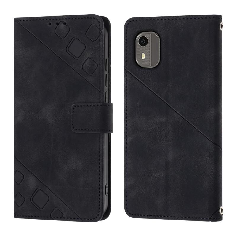 Για Nokia C12 Skin-feel ανάγλυφη δερμάτινη θήκη τηλεφώνου (μαύρο)