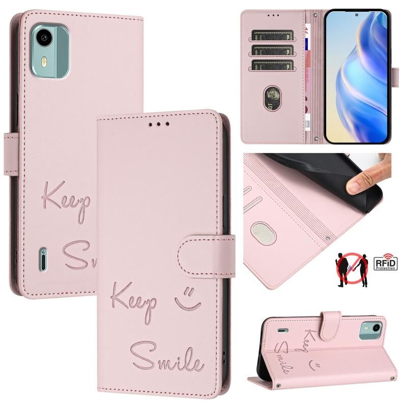 Για Nokia C12 Χαμόγελο ανάγλυφο RFID δερμάτινη θήκη τηλεφώνου (ροζ)