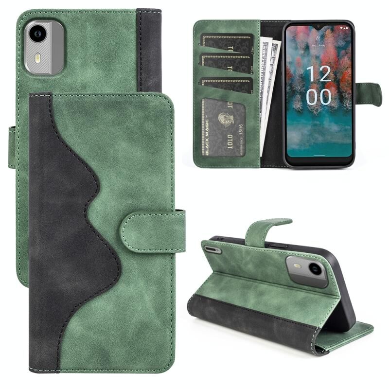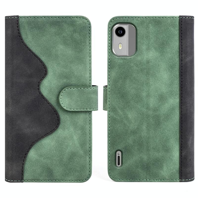 Για Nokia C12 ραφή οριζόντια Flip υπόθεση τηλεφώνου δέρμα (πράσινο)