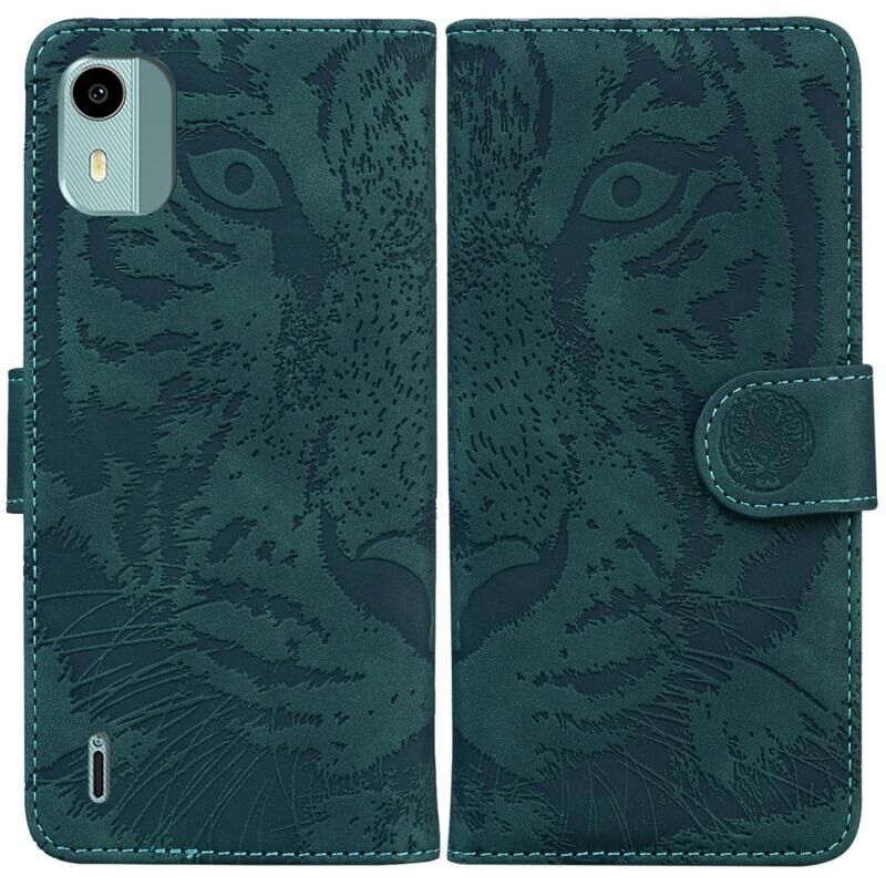 Θήκη τηλεφώνου από δέρμα με σχέδιο Tiger Embossing για Nokia C12 (Κόκκινο)