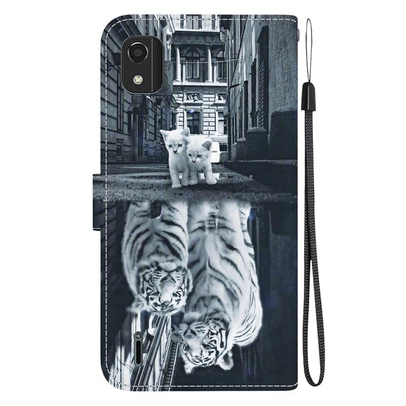 Θήκη τηλεφώνου από δέρμα με σχέδιο κρυστάλλινης υφής και πολύχρωμη ζωγραφική για Nokia C2 2ης Έκδοσης (Αντανάκλαση Γάτας Τίγρης)