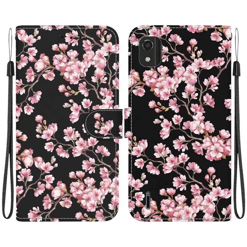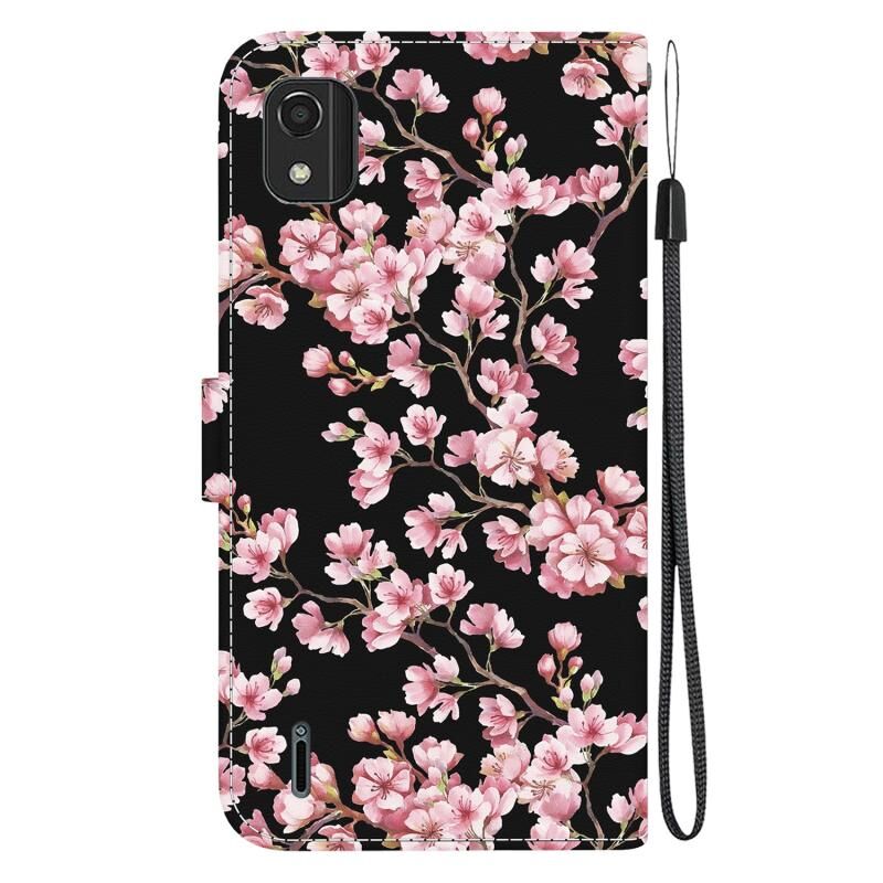 Θήκη τηλεφώνου από δέρμα με υφή κρυστάλλου και πολύχρωμη σχεδίαση για Nokia C2 2ης Έκδοσης (Μωβ Λουλούδι)