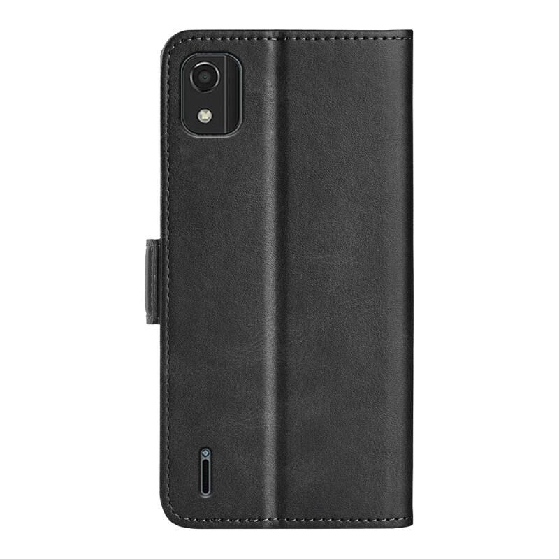 Για Nokia C2 2nd Edition Διπλής όψης μαγνητική πόρπη οριζόντια Flip δερμάτινη θήκη τηλεφώνου (μαύρο)