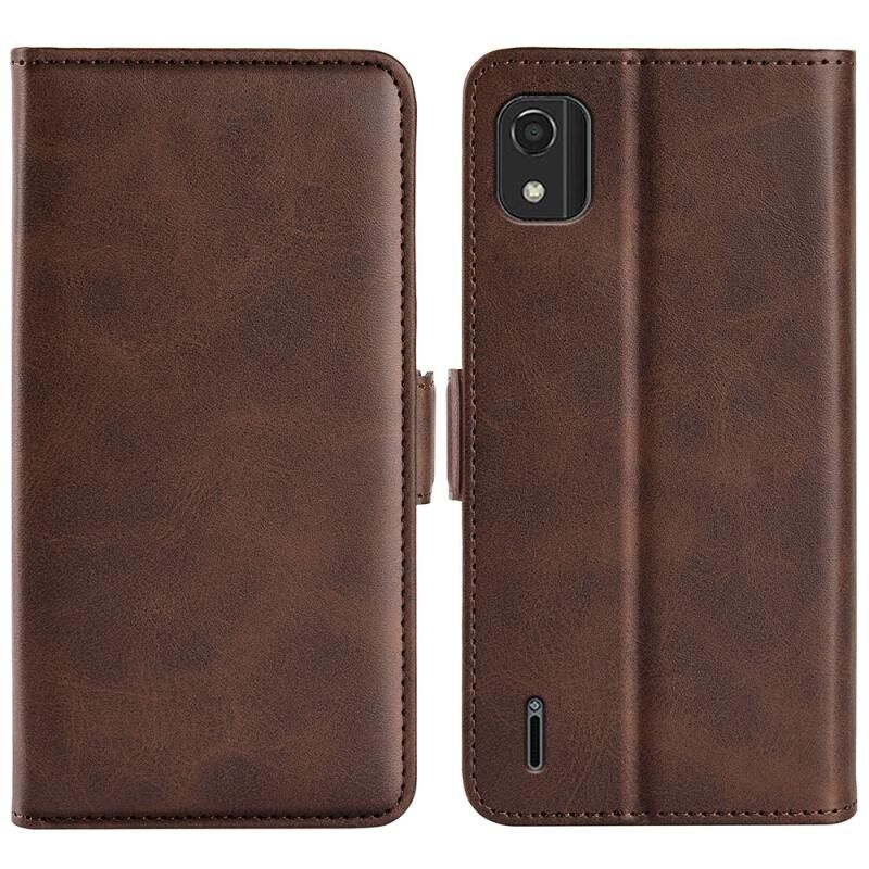 Για το Nokia C2 2nd Edition Διπλής όψης μαγνητική πόρπη οριζόντια Flip δερμάτινη θήκη τηλεφώνου (καφέ)