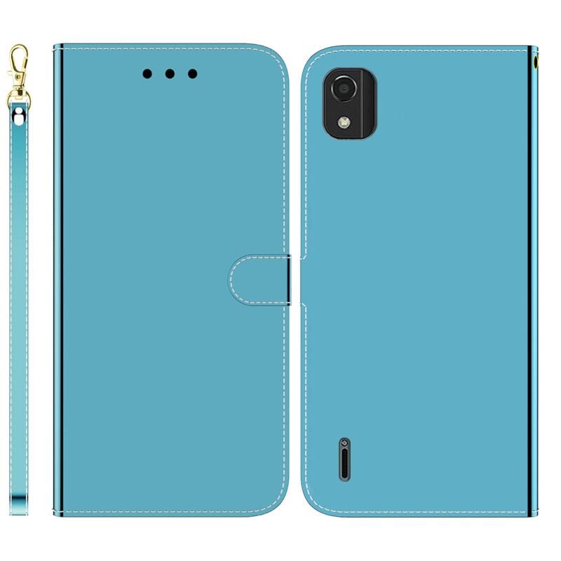 Για το Nokia C2 2nd Edition Απομιμητική επιφάνεια καθρέφτη Οριζόντια Flip δερμάτινη θήκη τηλεφώνου (μπλε)