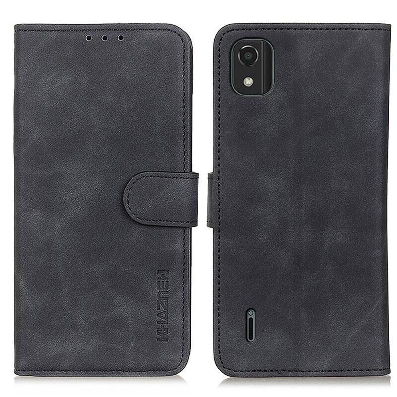 Θήκη τηλεφώνου δερμάτινη, οριζόντια, με αναδιπλούμενο καπάκι και ανάγλυφη υφή retro για Nokia C2 2ης Έκδοσης KHAZNEH (Μαύρο)