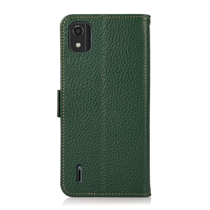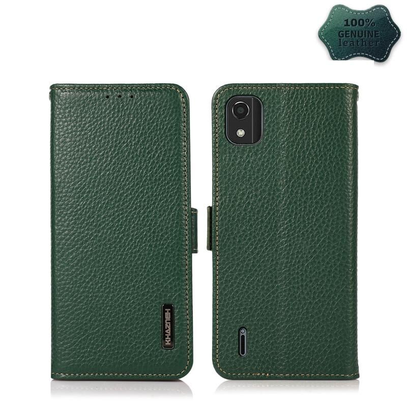 Θήκη τηλεφώνου Nokia C2 2ης Έκδοσης KHAZNEH, Μαγνητική Πλαϊνή, Δερμάτινη Litchi, Γνήσιο Δέρμα, RFID (Μαύρο)