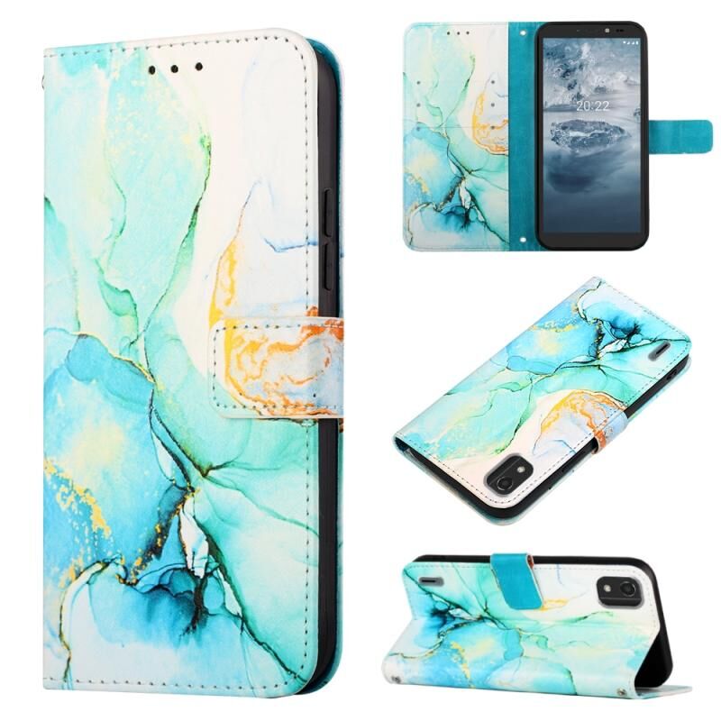 Θήκη τηλεφώνου από δέρμα με σχέδιο μάρμαρου για Nokia C2 2ης Έκδοσης PT003 (Πράσινο LS003)