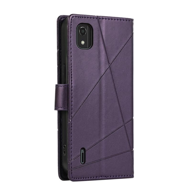 Θήκη τηλεφώνου για Nokia C2 2ης Έκδοσης, από γνήσιο δέρμα PU με ανάγλυφη υφή και λεπτομέρεια γραμμής (Μπλε)
