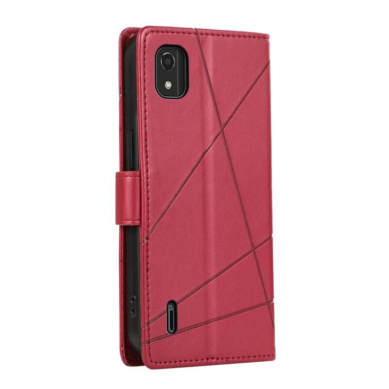 Θήκη τηλεφώνου για Nokia C2 2ης Έκδοσης, από γνήσιο δέρμα PU με ανάγλυφη υφή και λεπτομέρεια γραμμής (Μπλε)