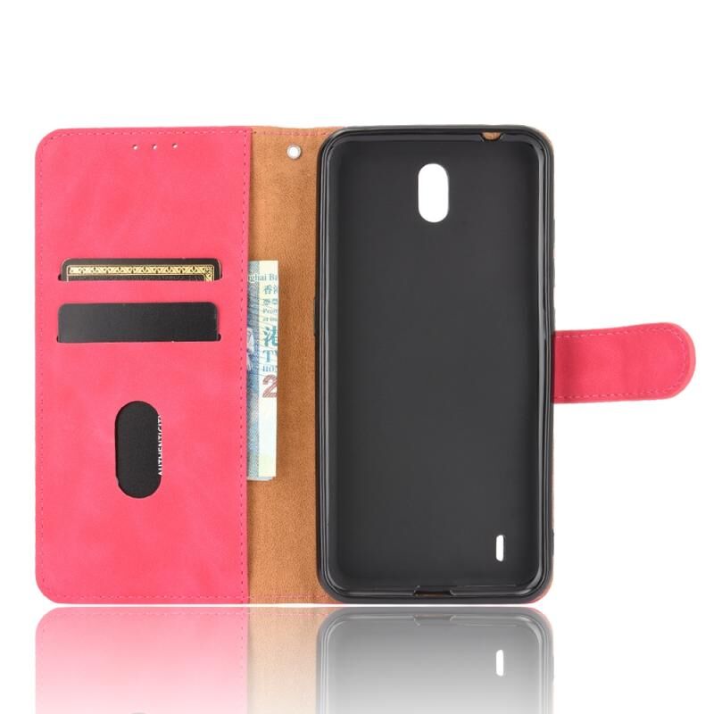 Για Nokia C2 Αμιγές χρώμα δέρμα αίσθηση μαγνητική πόρπη οριζόντια Flip μοσχάρι υφή PU δέρμα υπόθεση με κάτοχο & υποδοχές καρτών & πορτοφόλι (Rose Red)