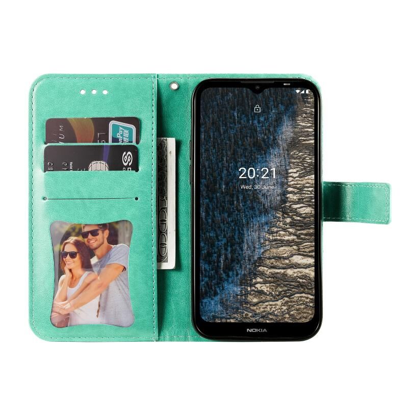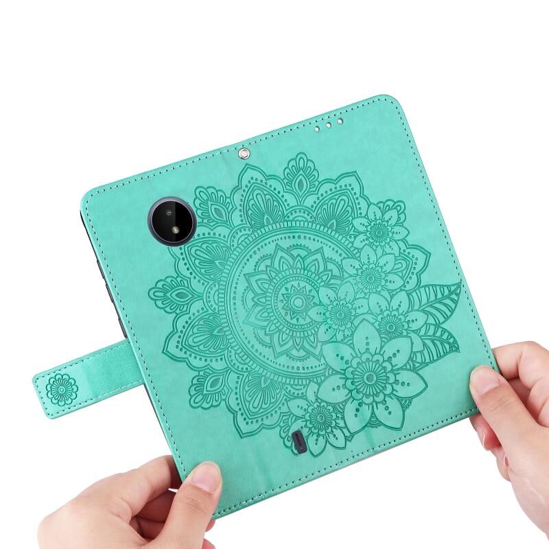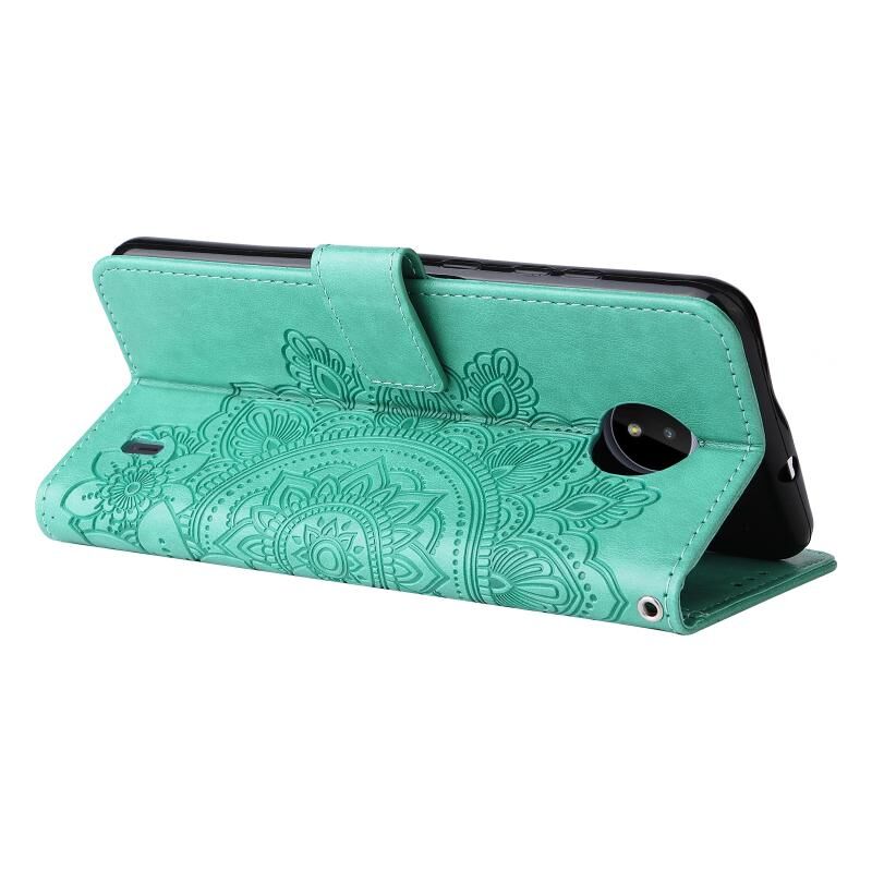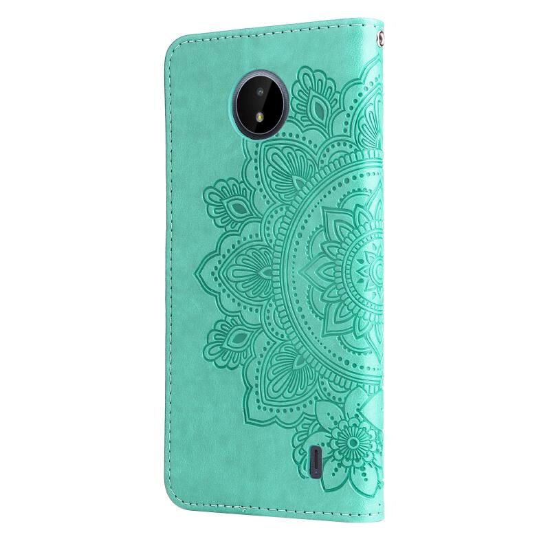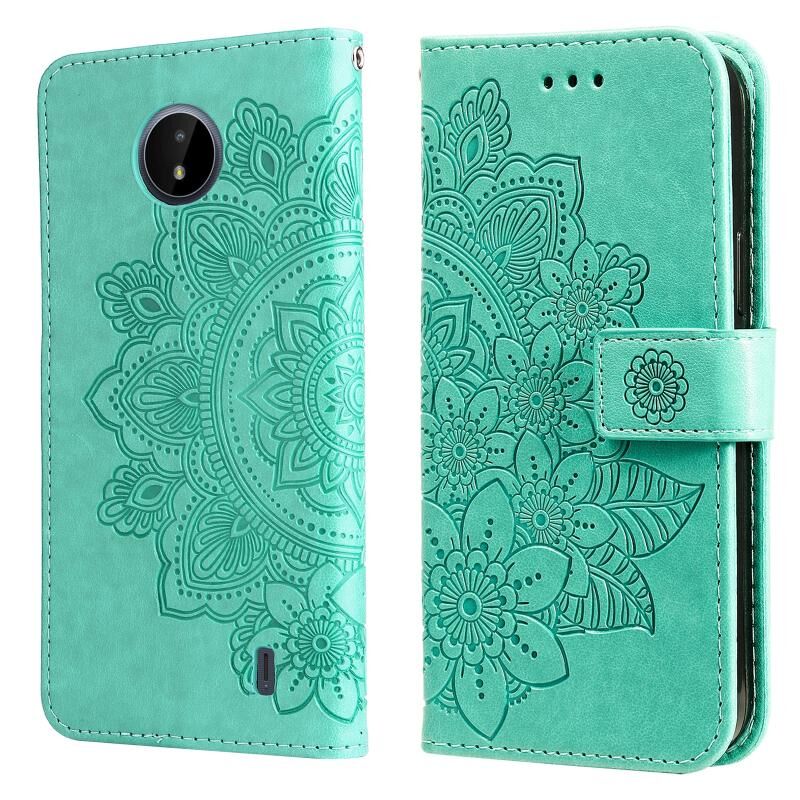 Για Nokia C20 / C10 7-πέταλα λουλούδια ανάγλυφο οριζόντια Flip δερμάτινη θήκη τηλεφώνου με θήκη & υποδοχές για κάρτες (πράσινο)