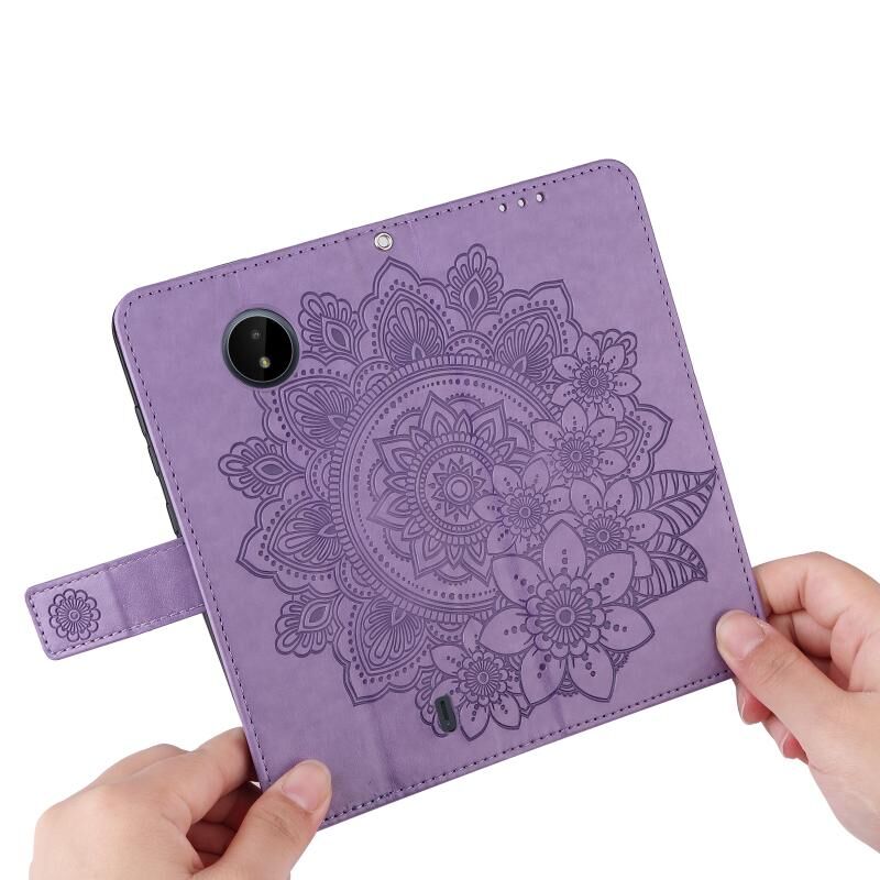 Για Nokia C20 / C10 7-πέταλα λουλούδια ανάγλυφο οριζόντια Flip δερμάτινη θήκη τηλεφώνου με θήκη & υποδοχές καρτών (ανοιχτό μοβ)