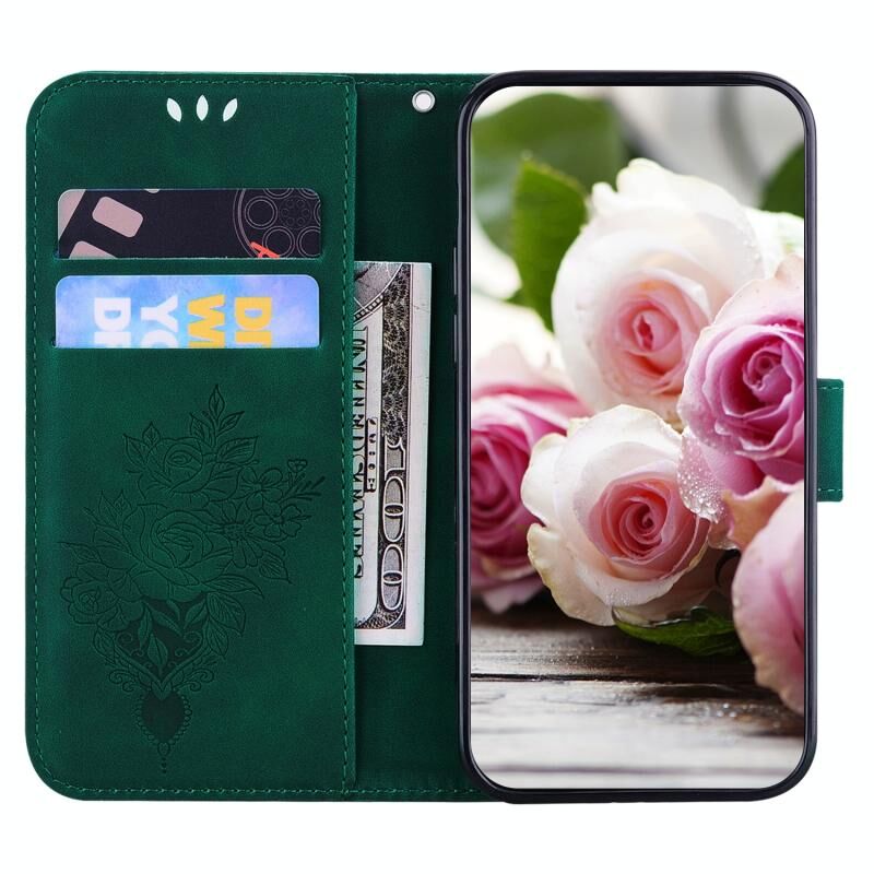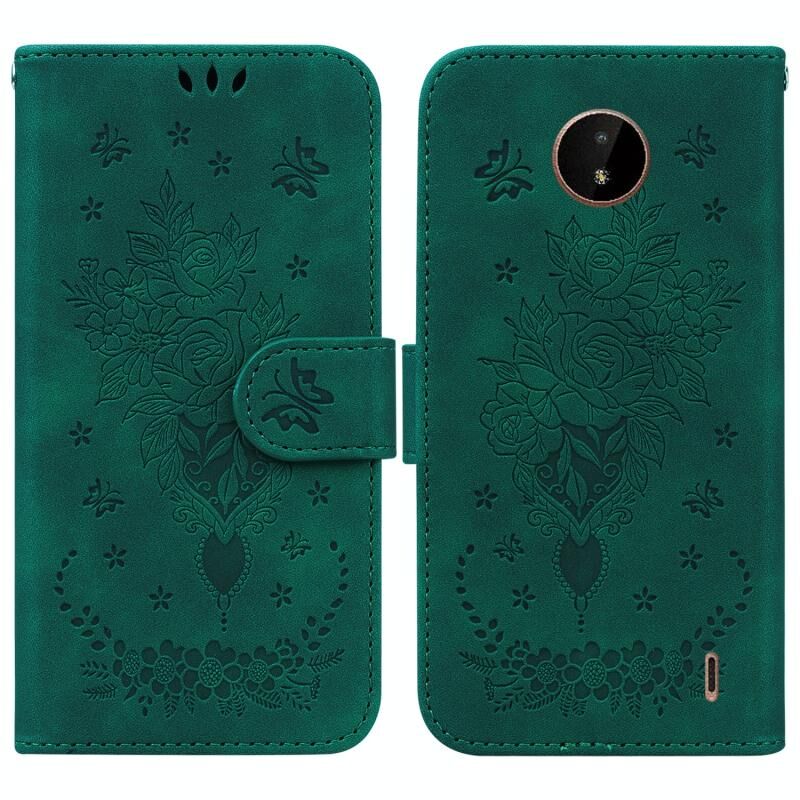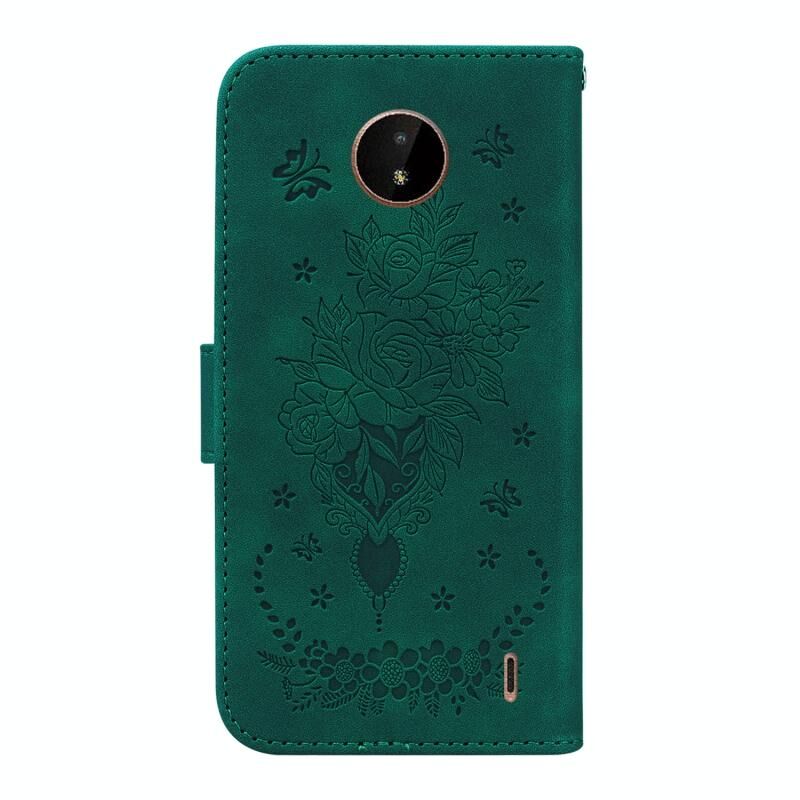Για Nokia C20 / C10 Πεταλούδα Rose ανάγλυφη δερμάτινη θήκη τηλεφώνου (πράσινο)