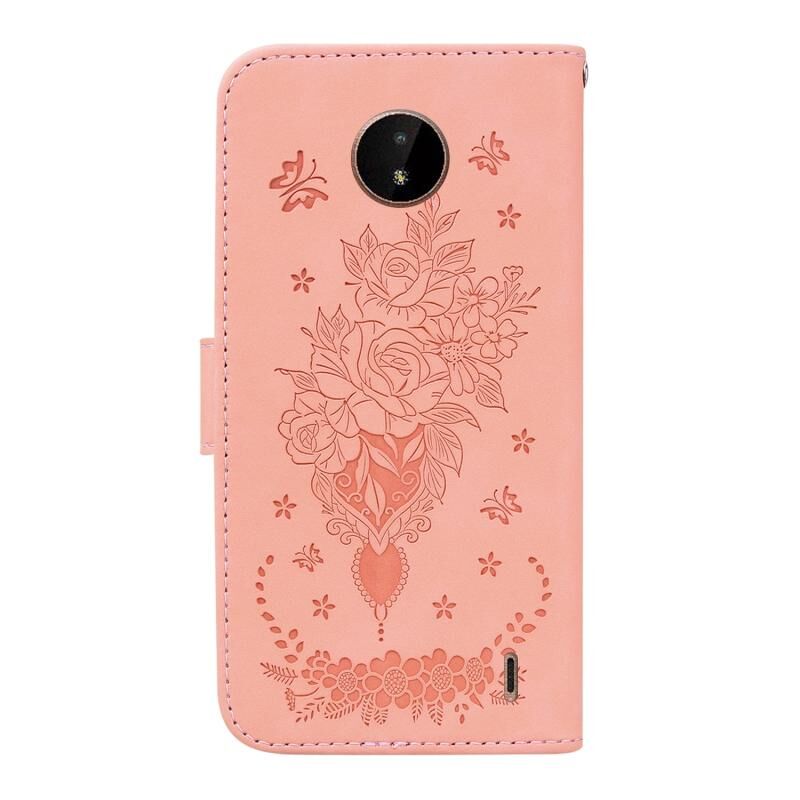 Για Nokia C20 / C10 Πεταλούδα Rose ανάγλυφη δερμάτινη θήκη τηλεφώνου (ροζ)