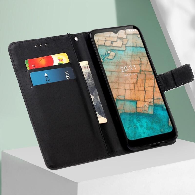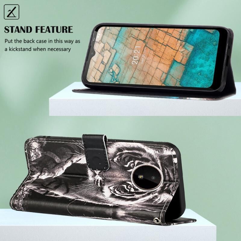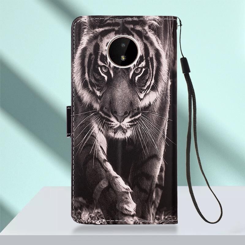 Θήκη τηλεφώνου από δέρμα με απλή ύφανση και έγχρωμο σχέδιο για Nokia C20 / C10 (Μαύρη Τίγρη)