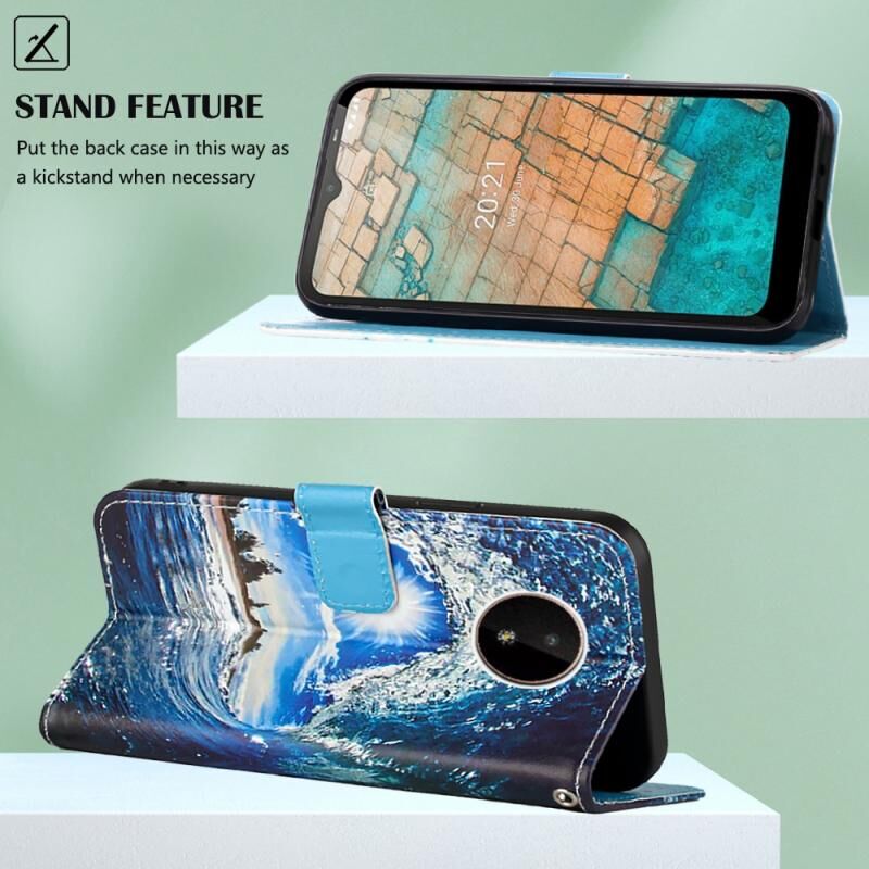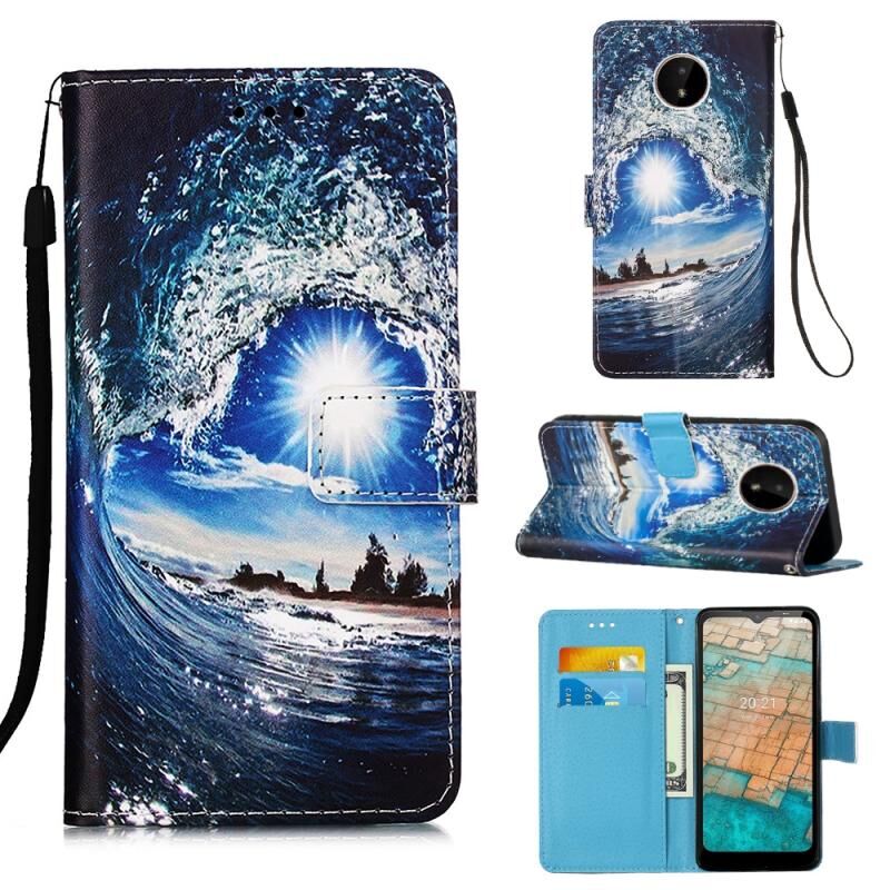 Θήκη τηλεφώνου από δέρμα με απλή ύφανση και έγχρωμο σχέδιο για Nokia C20 / C10 (Κύματα και Ήλιος)