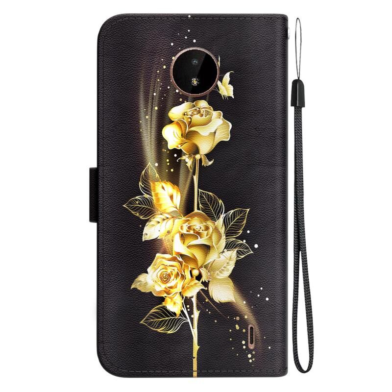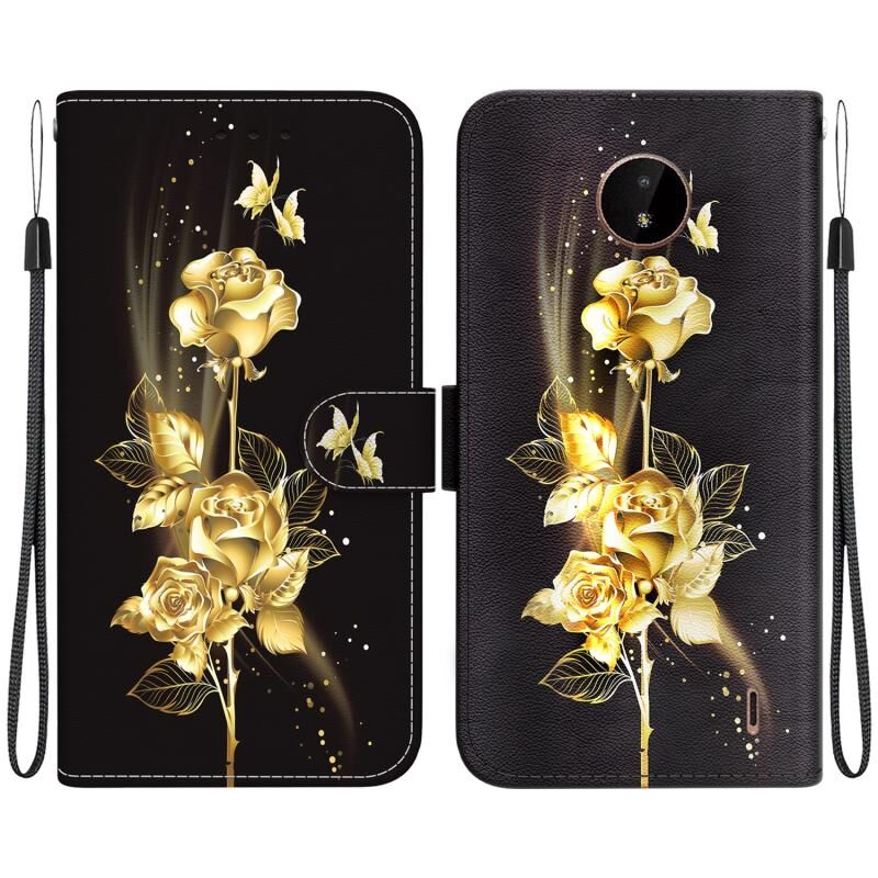 Θήκη τηλεφώνου από δέρμα με κρυσταλλική υφή και πολύχρωμο σχέδιο για Nokia C20 / C10 (Μωβ Παιώνια)