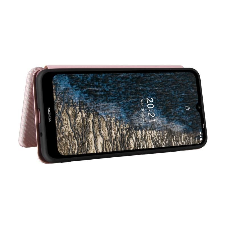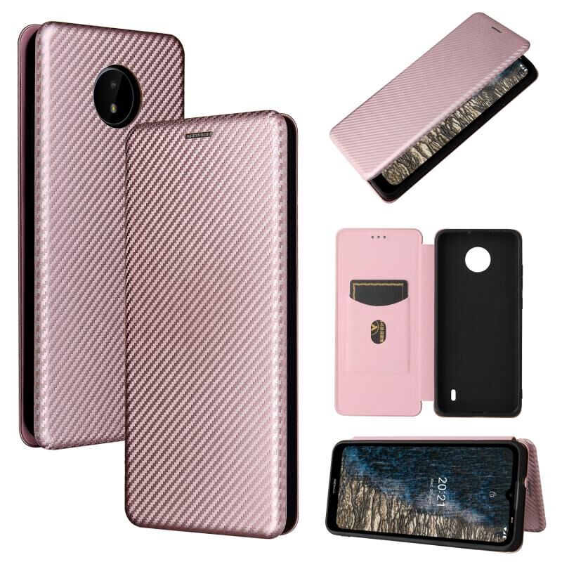 Για Nokia C20 Carbon Fiber Texture Οριζόντια Flip TPU + PC + PU δέρμα υπόθεση με υποδοχή κάρτας (ροζ)