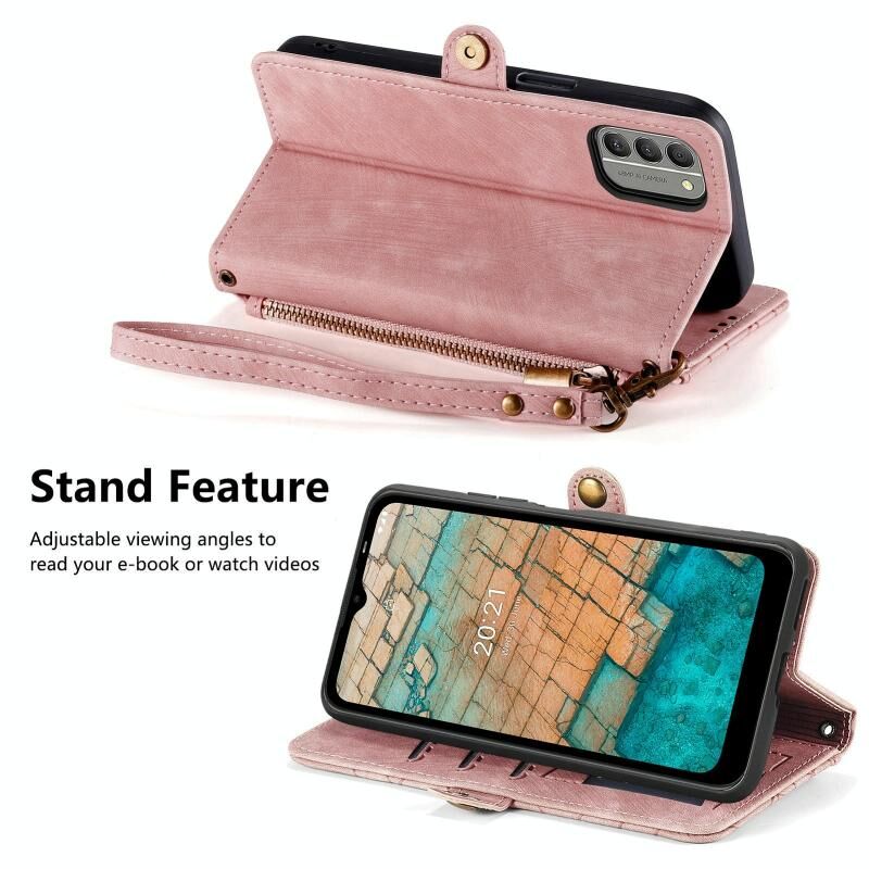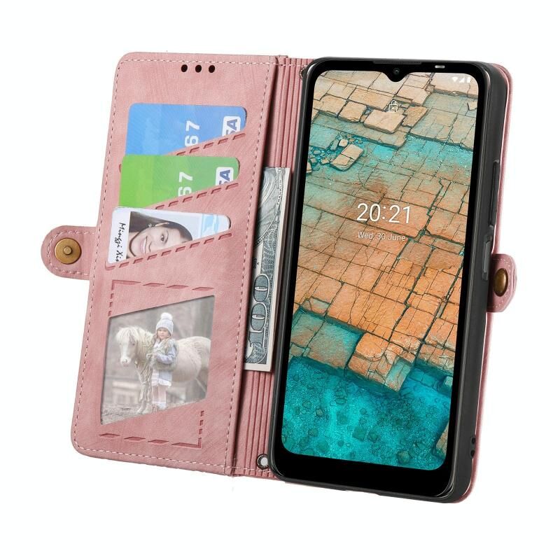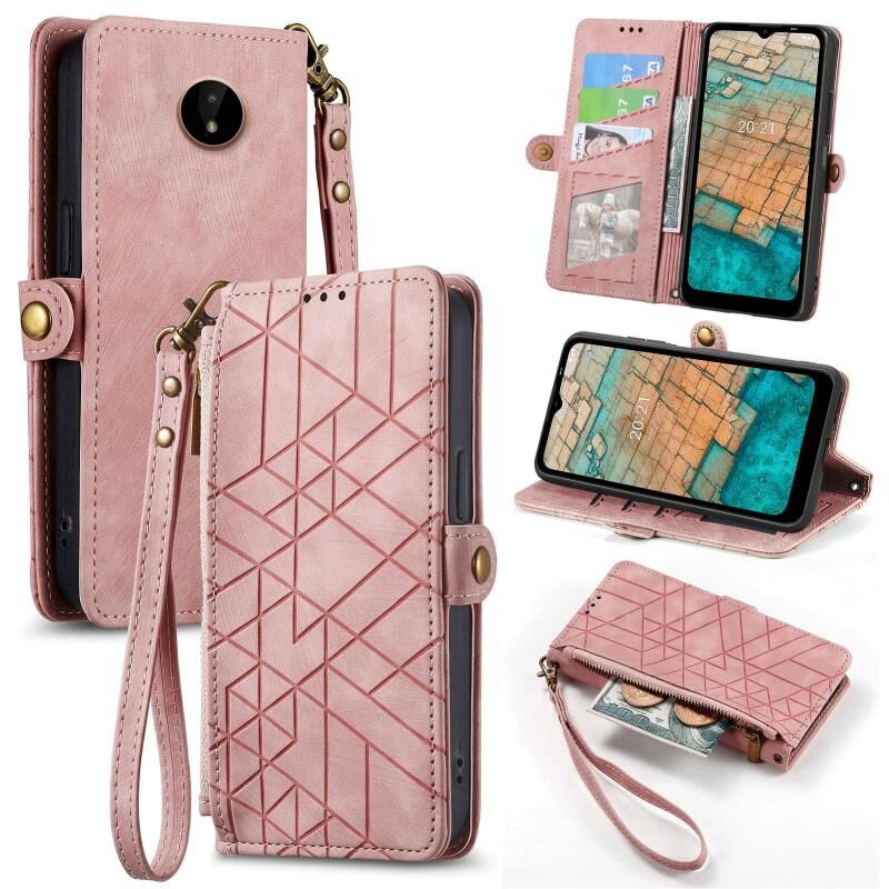Για Nokia C20 γεωμετρική φερμουάρ πορτοφόλι πλευρά πόρπη δερμάτινη θήκη τηλεφώνου (ροζ)