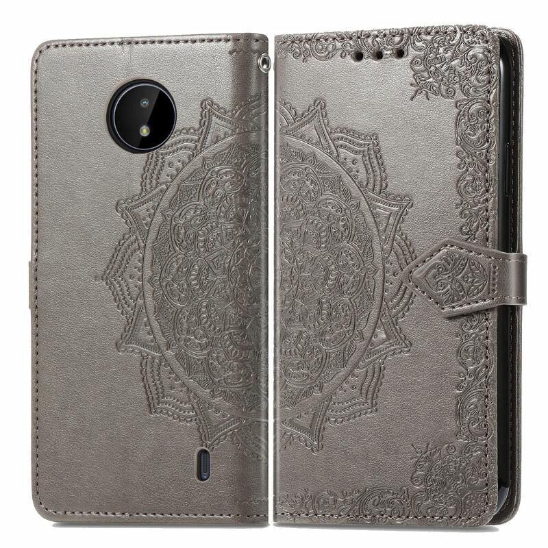 Για Nokia C20 Mandala ανάγλυφο μοτίβο οριζόντια Flip δερμάτινη θήκη με κάτοχο & υποδοχές για κάρτες & πορτοφόλι & κορδόνι (γκρι)