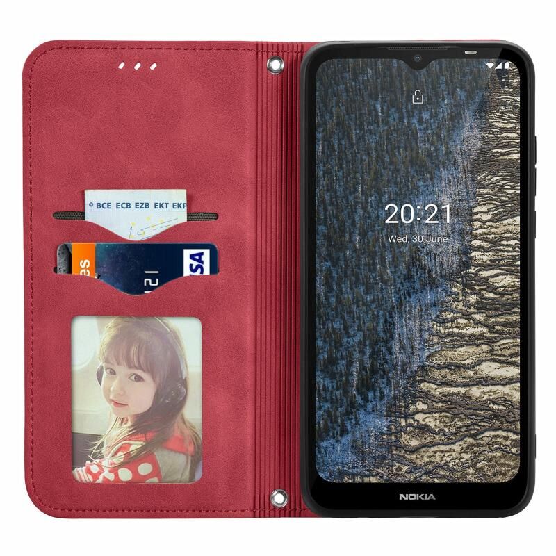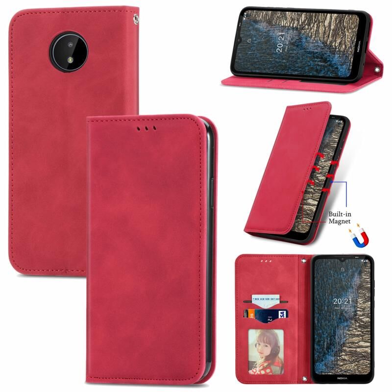 Για το Nokia C20 Retro Skin Feel Business μαγνητική οριζόντια Flip δερμάτινη θήκη με κάτοχο & υποδοχές καρτών & πορτοφόλι & πλαίσιο φωτογραφιών (κόκκινο)