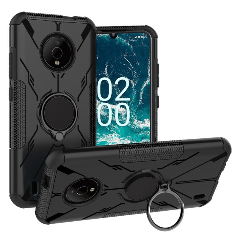 Θήκη κινητού τηλεφώνου για Nokia C200 Armor Bear ανθεκτική στις κρούσεις από PC + TPU με βάση δακτυλιδιού (Μαύρο)