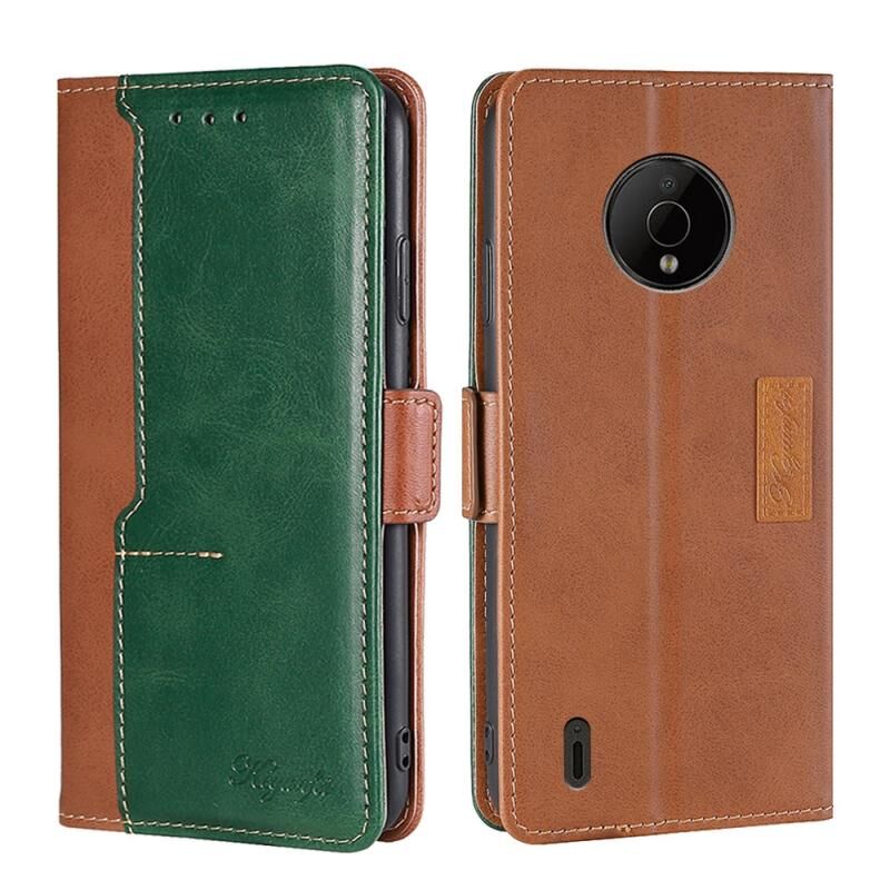 Για Nokia C200 Αντίθετο χρώμα πλευρά πόρπη δερμάτινη θήκη τηλεφώνου (ανοιχτό καφέ + πράσινο)