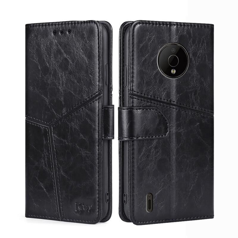 Για το Nokia C200 Γεωμετρική ραφή οριζόντια Flip δερμάτινη θήκη τηλεφώνου (μαύρο)