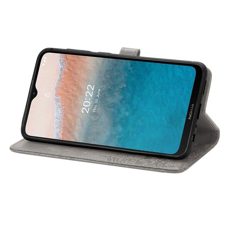 Για το Nokia C200 Mandala λουλούδι ανάγλυφο δερμάτινη θήκη τηλεφώνου (γκρι)