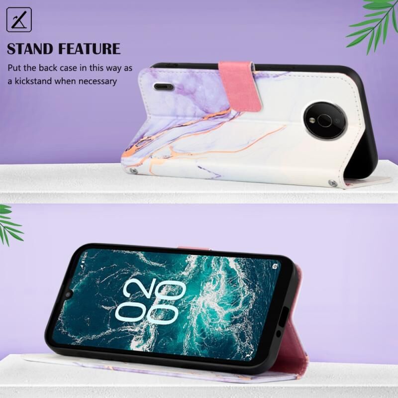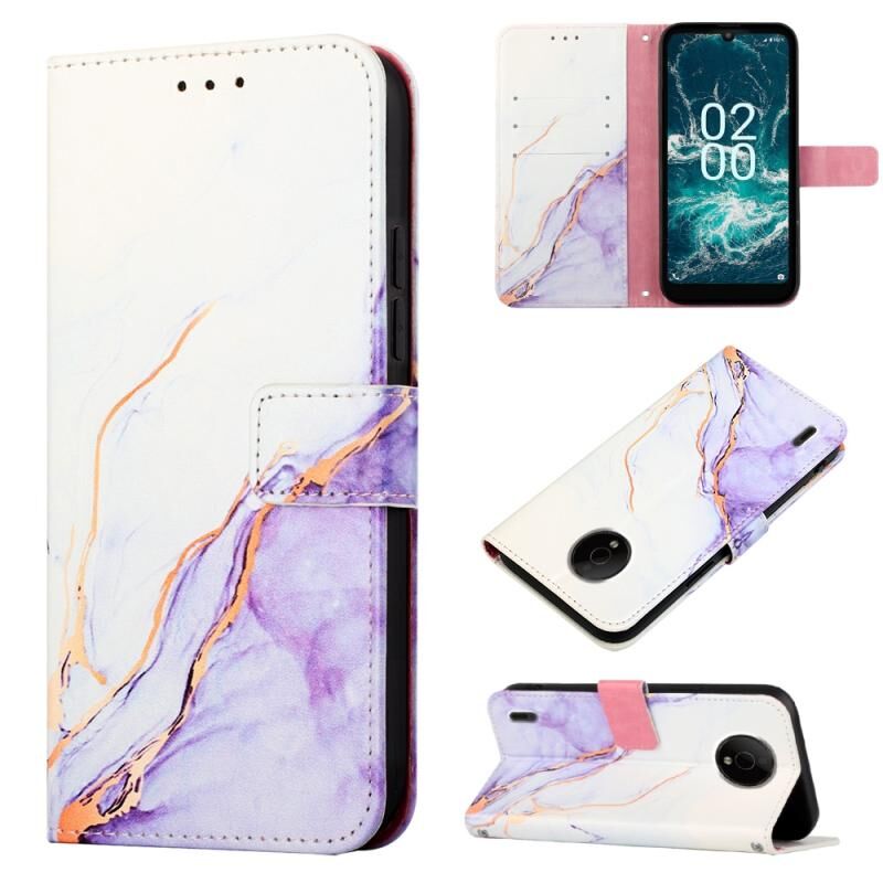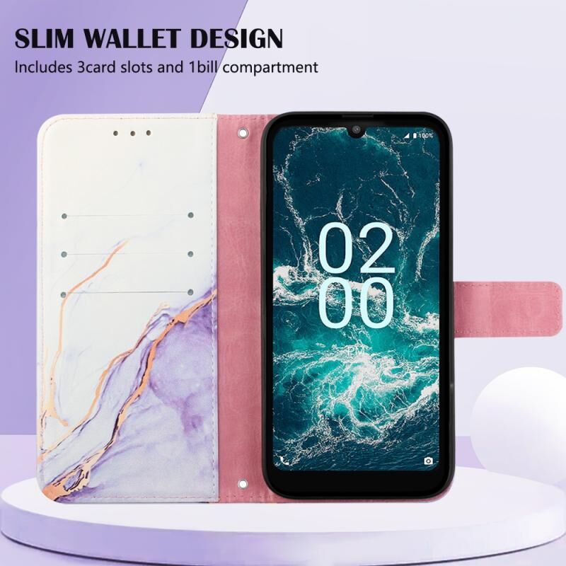Θήκη τηλεφώνου από δέρμα με σχέδιο μαρμάρου και πτυσσόμενο μηχανισμό για Nokia C200 PT003 (Ροζ, Μωβ, Χρυσό LS001)