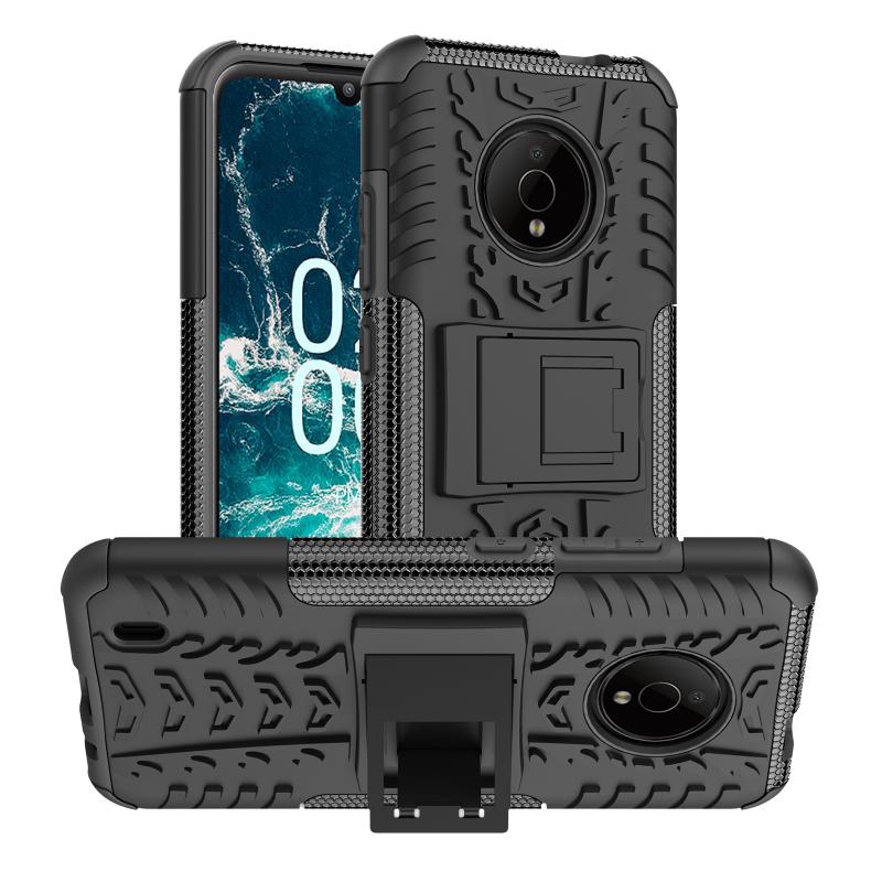 Θήκη κινητού τηλεφώνου για Nokia C200 με υφή ελαστικού, κατασκευασμένη από TPU + PC με βάση στήριξης (Πορτοκαλί)