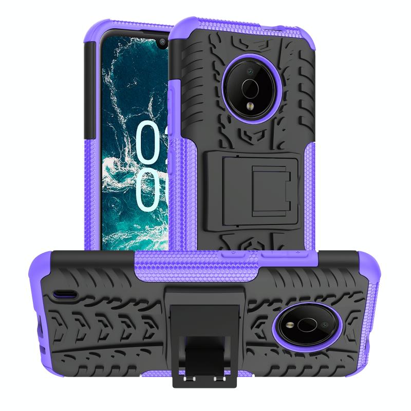 Θήκη κινητού τηλεφώνου για Nokia C200 με υφή ελαστικού, κατασκευασμένη από TPU + PC με βάση στήριξης (Πορτοκαλί)