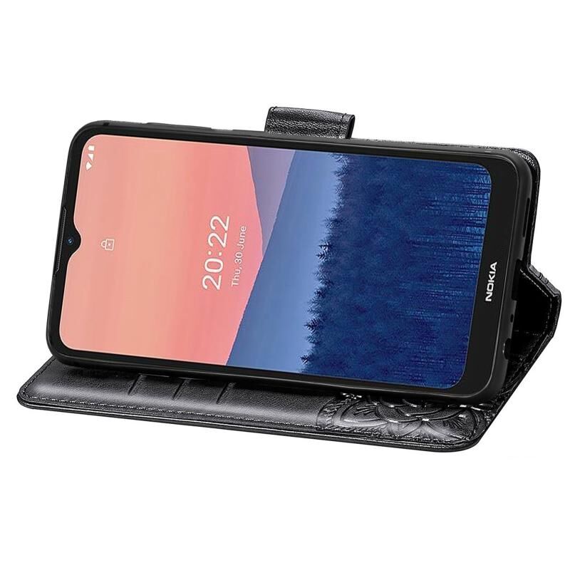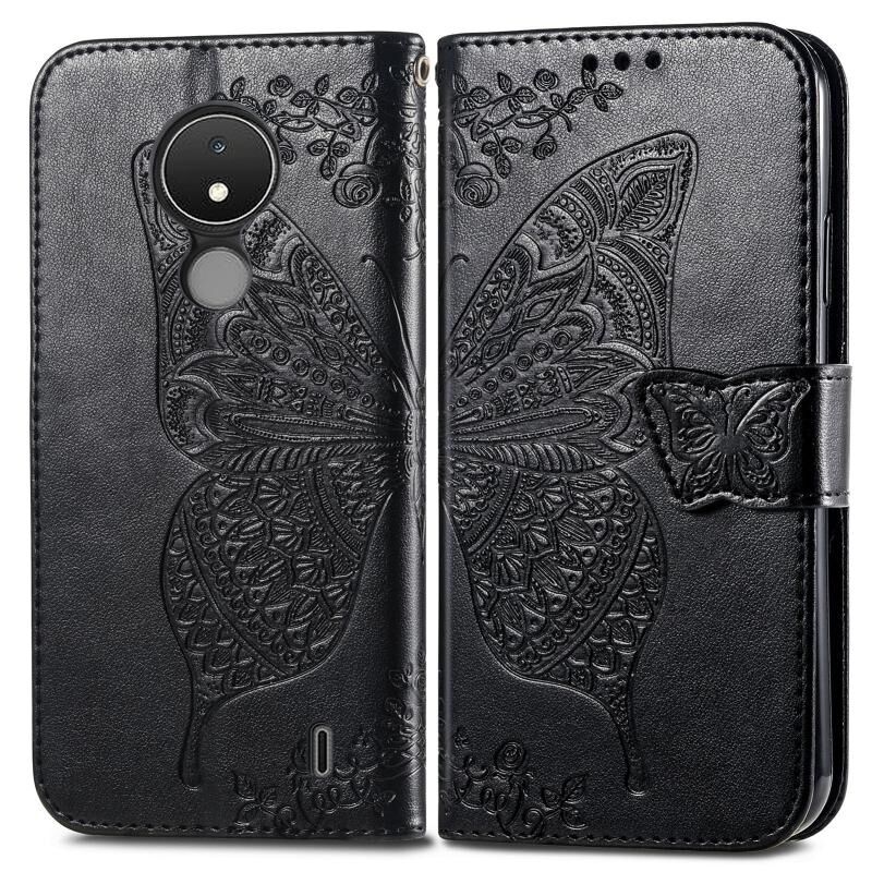 Θήκη τηλεφώνου από δέρμα με ανάγλυφο σχέδιο πεταλούδας και λουλουδιών για Nokia C21 (Μαύρο)
