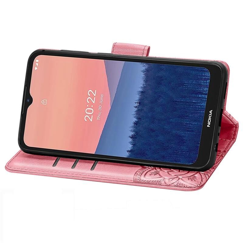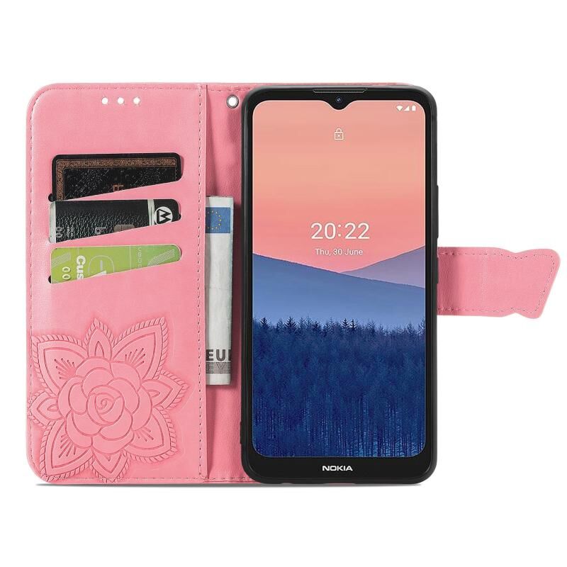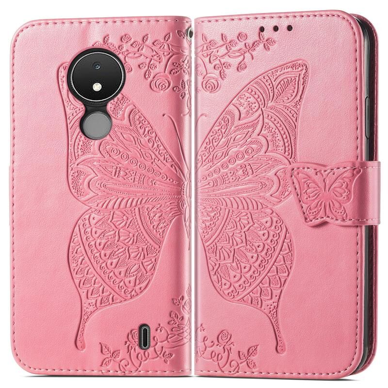 Θήκη τηλεφώνου από δέρμα με ανάγλυφο σχέδιο πεταλούδας και λουλουδιών για Nokia C21 (Μαύρο)