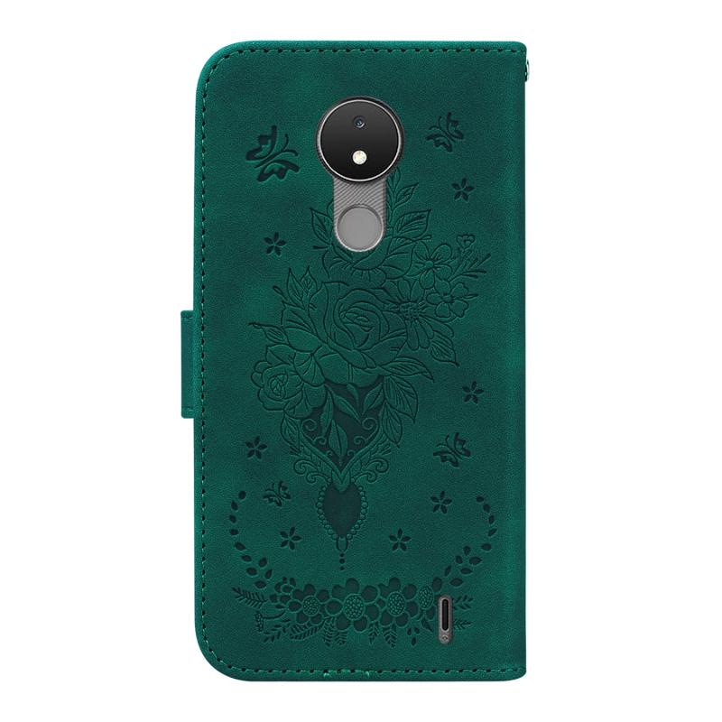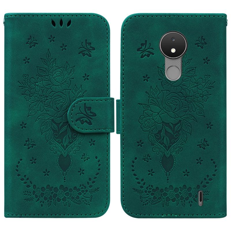 For Nokia C21 Butterfly Rose Embossed Leather Phone Case(Green)