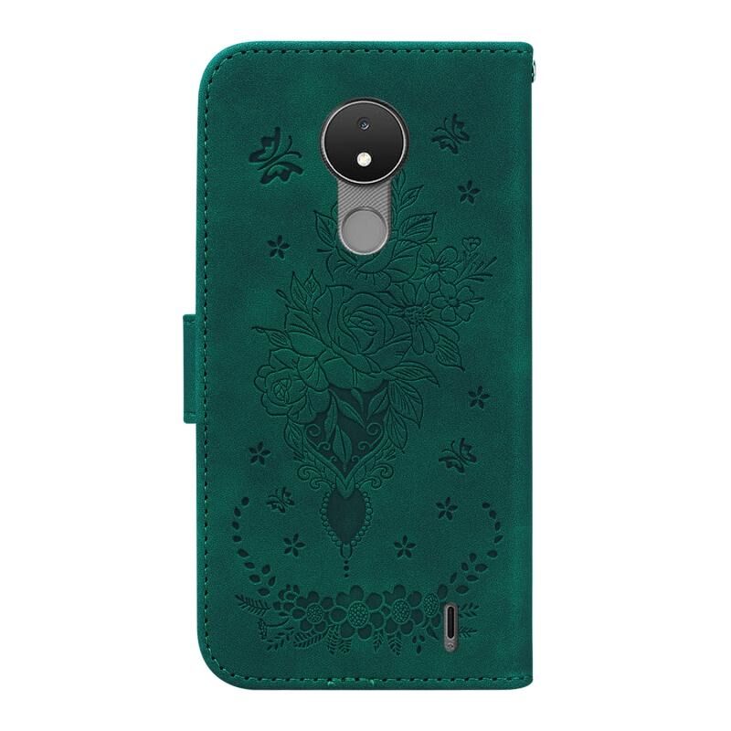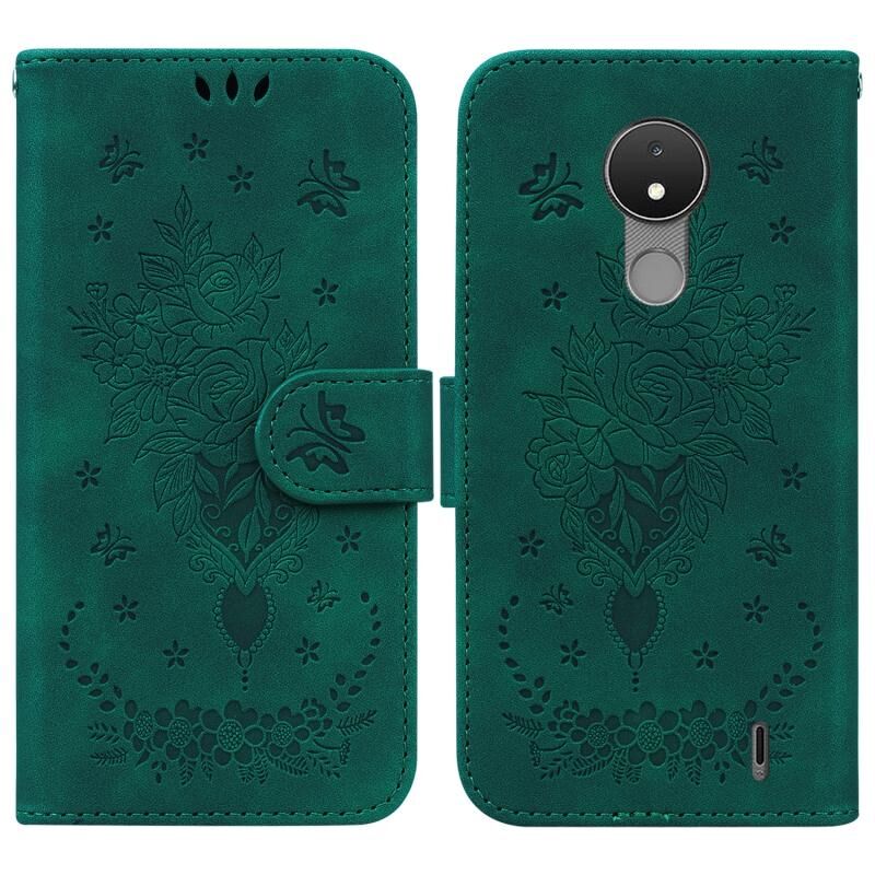 Θήκη τηλεφώνου από δέρμα με ανάγλυφο σχέδιο πεταλούδας για Nokia C21 (Κόκκινο)