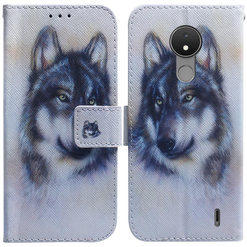For Nokia C21 Coloured Drawing Leather Phone Case(White Wolf)