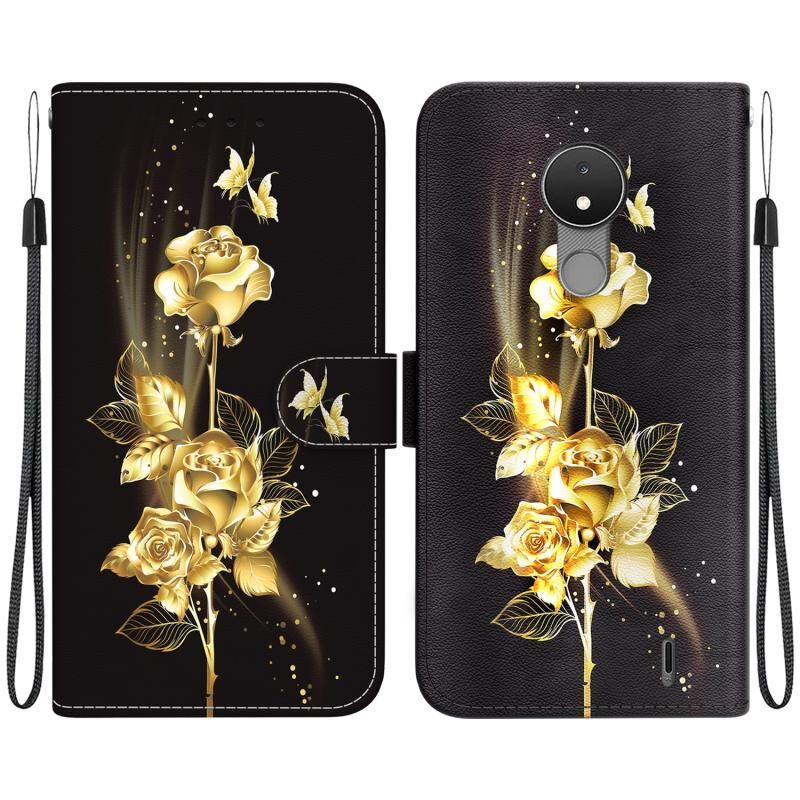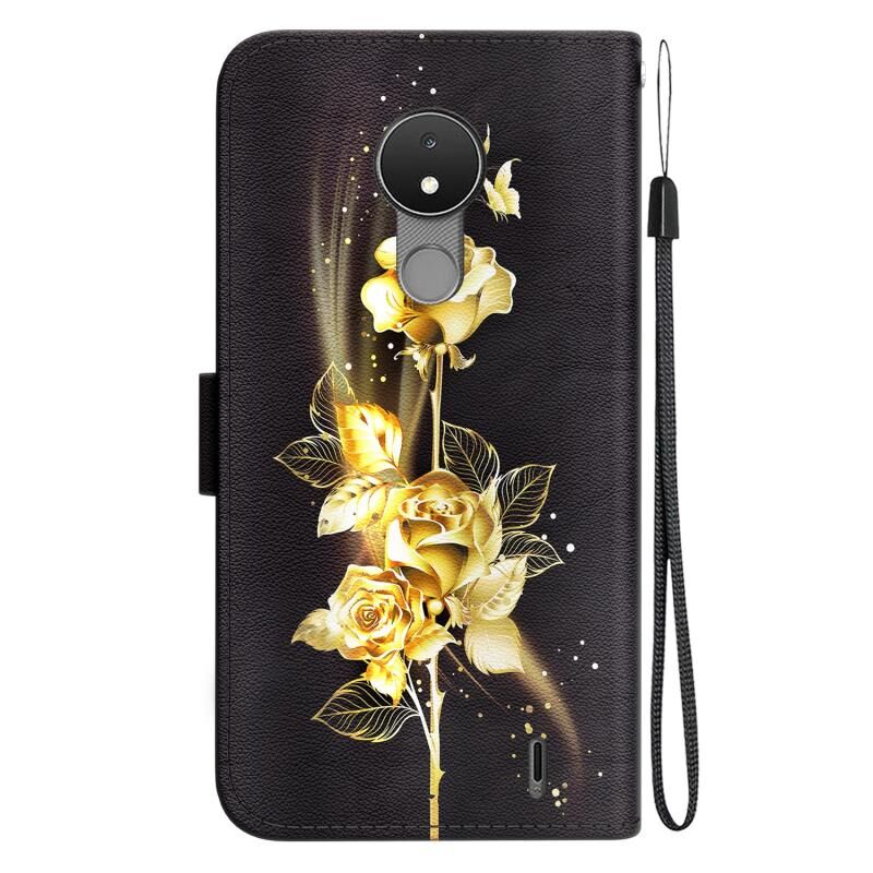 Θήκη τηλεφώνου Nokia C21 με κρυστάλλινη υφή, πολύχρωμο σχέδιο από δέρμα (Μωβ Παιώνια)