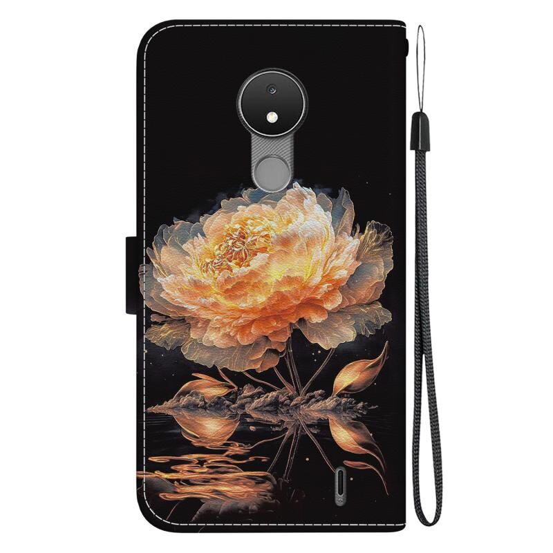 Θήκη τηλεφώνου Nokia C21 με κρυστάλλινη υφή, πολύχρωμο σχέδιο από δέρμα (Μωβ Παιώνια)
