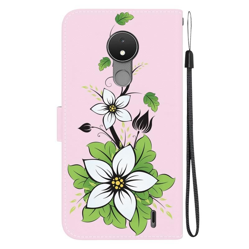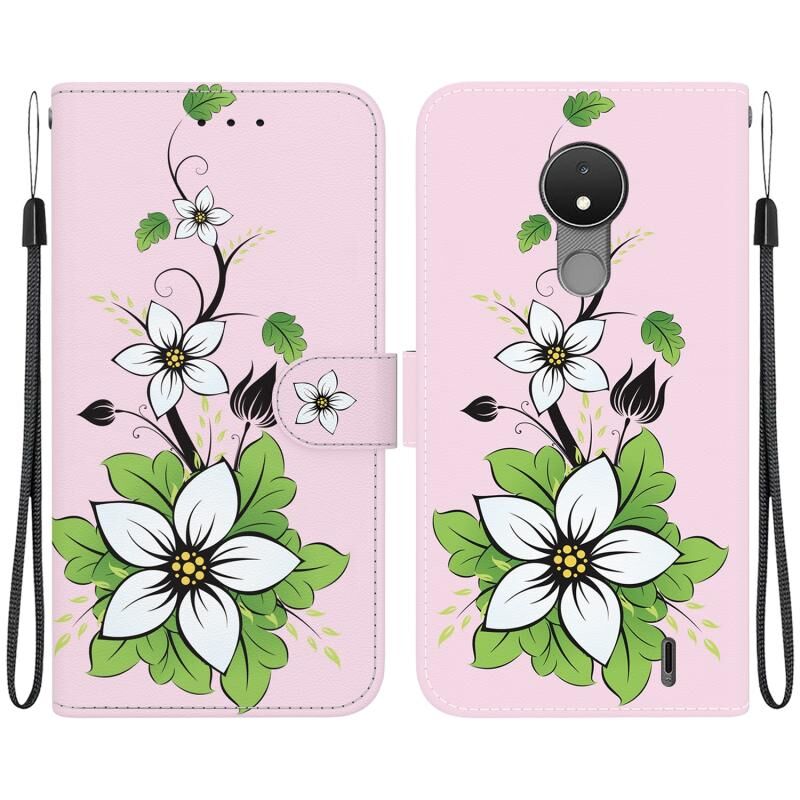 Θήκη τηλεφώνου Nokia C21 με κρυστάλλινη υφή, πολύχρωμη σχεδίαση, δερμάτινη (Lily)