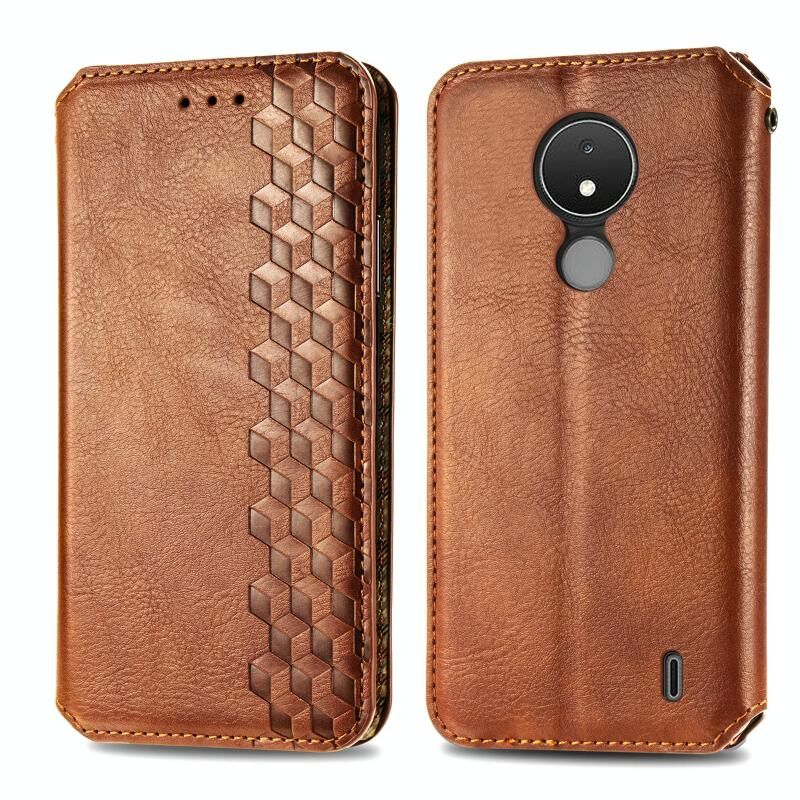 Για Nokia C21 Cubic Grid Πιεσμένο μαγνητικό δέρμα τηλέφωνο υπόθεση (καφέ)