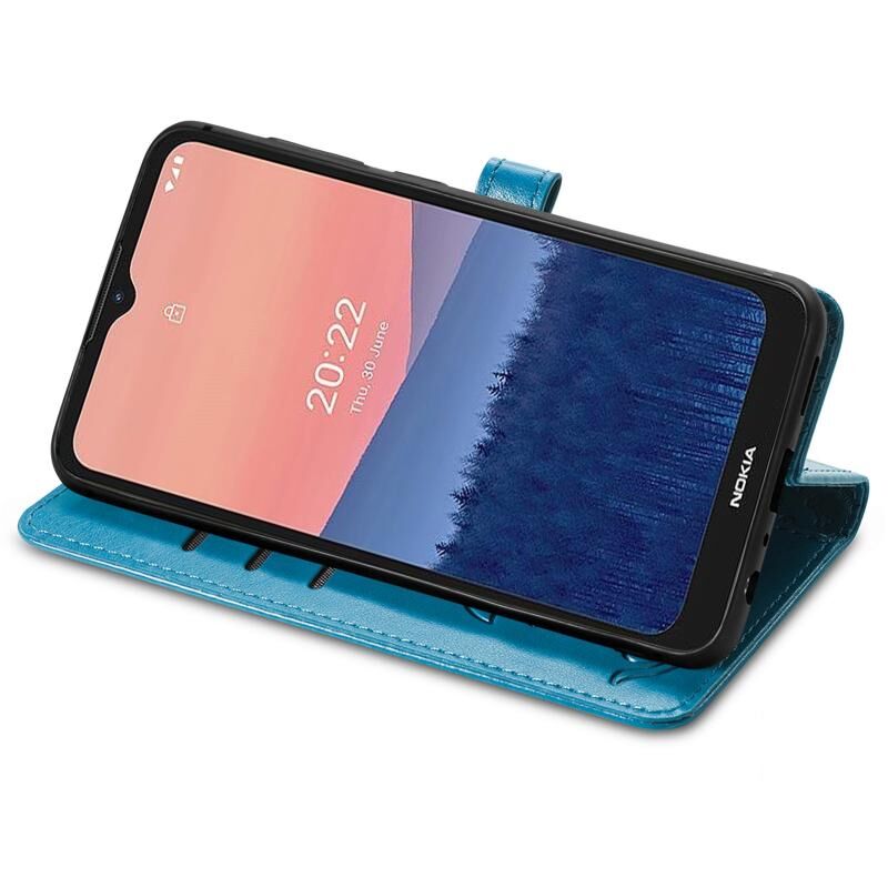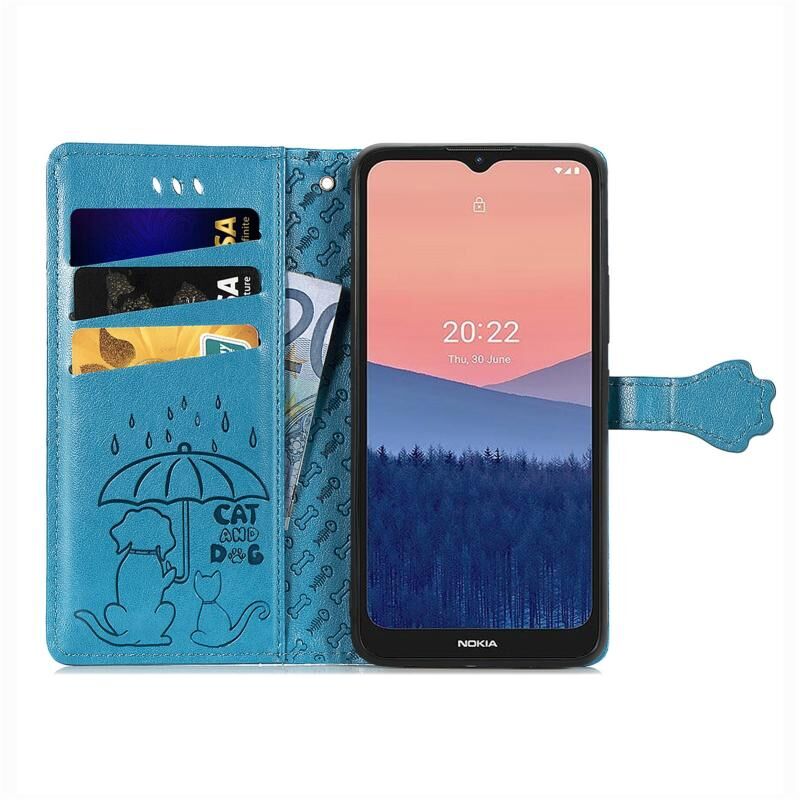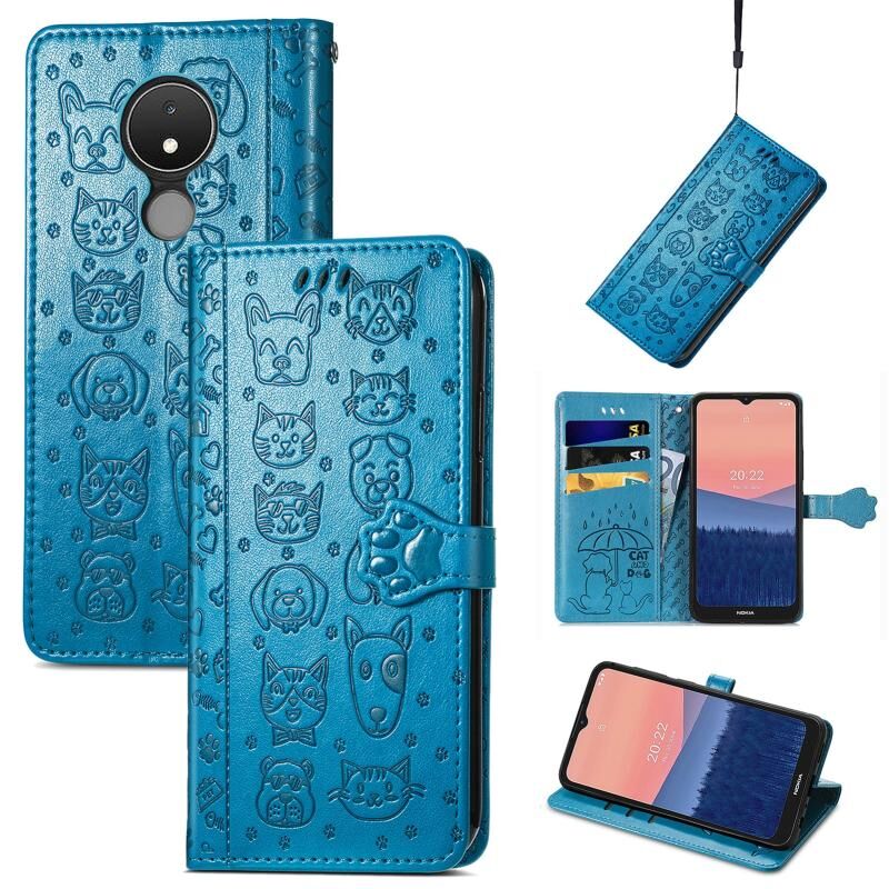 Θήκη τηλεφώνου από δέρμα με ανάγλυφα σχέδια χαριτωμένων γάτας και σκύλου για Nokia C21 (Μωβ)