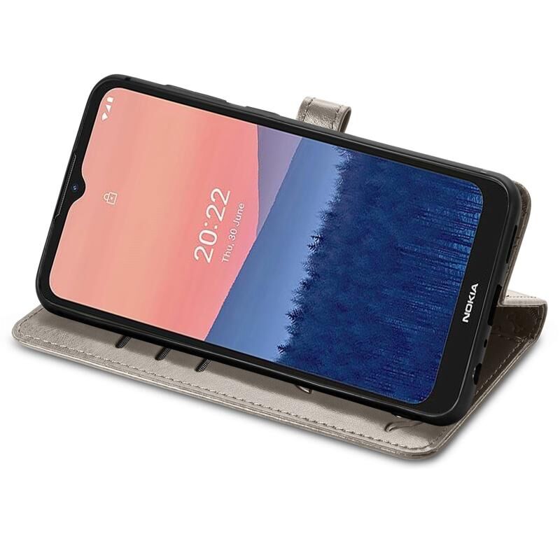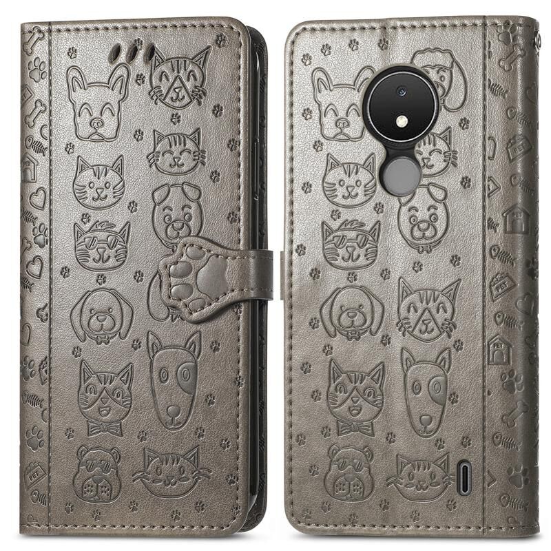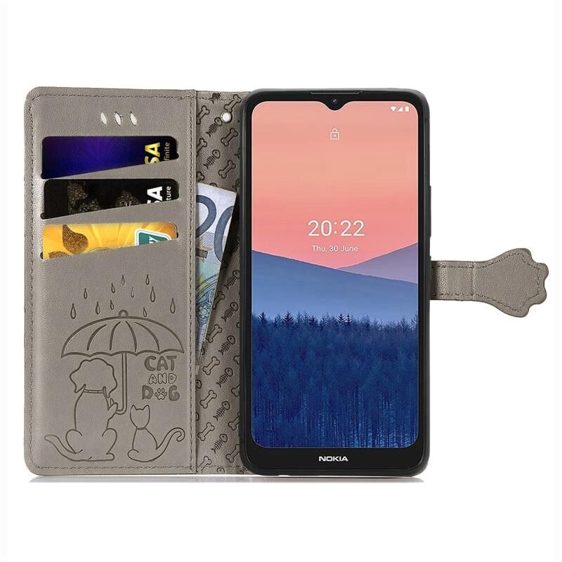 Θήκη τηλεφώνου από δέρμα με ανάγλυφα σχέδια χαριτωμένων γάτας και σκύλου για Nokia C21 (Μωβ)