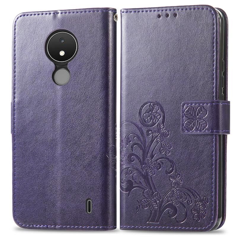 Για Nokia C21 τετράφυλλο κούμπωμα ανάγλυφο πόρπη δερμάτινη θήκη τηλεφώνου (μωβ)