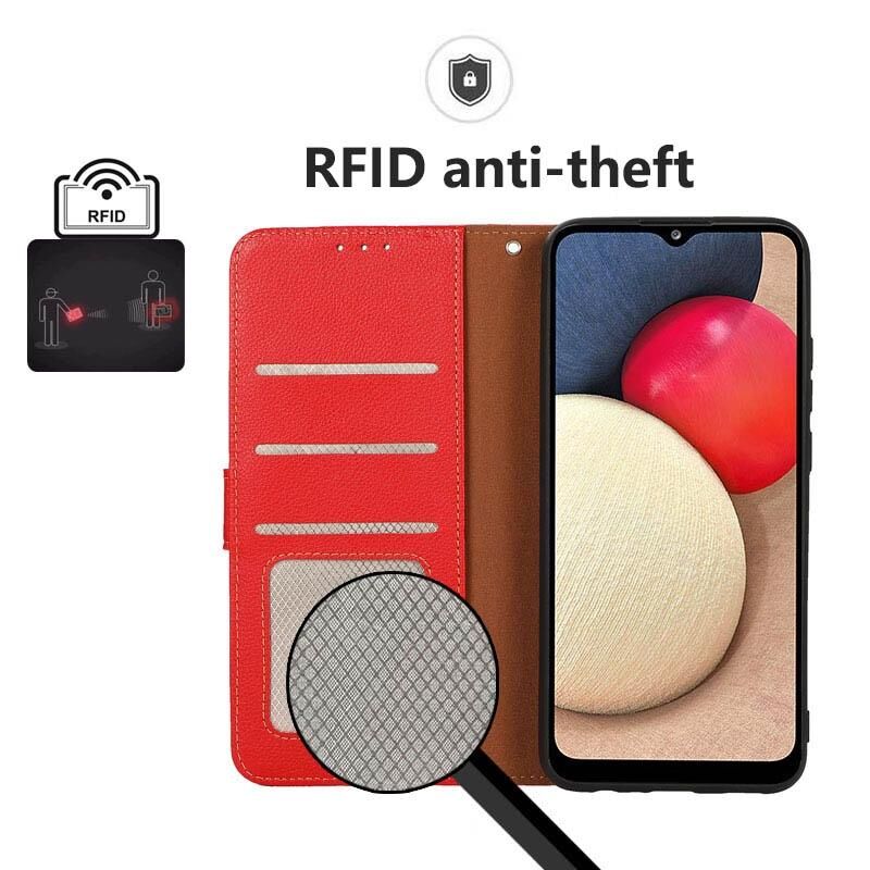 Θήκη κινητού τηλεφώνου Nokia C21 KHAZNEH με δερμάτινη υφή Litchi και προστασία RFID (Κόκκινο)