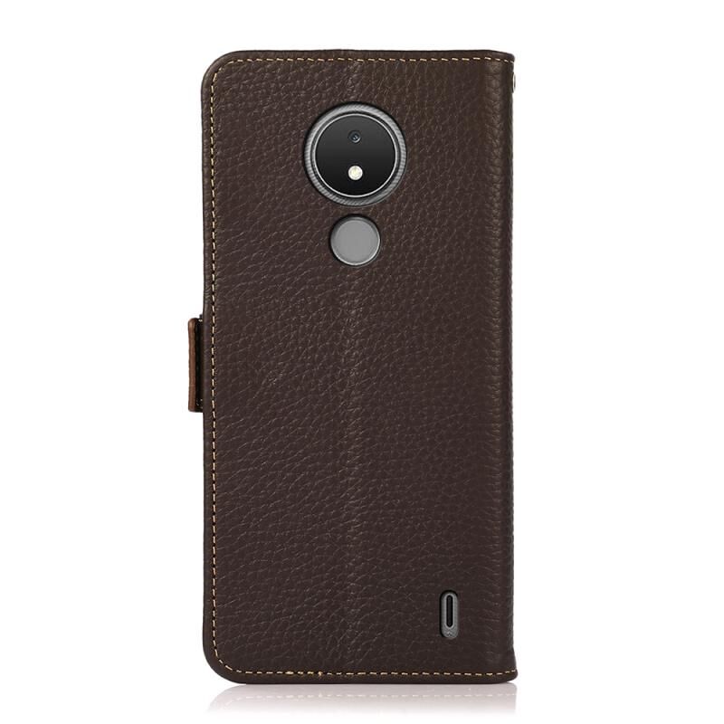 Θήκη τηλεφώνου Nokia C21 KHAZNEH με μαγνητικό κλείσιμο, γνήσιο δέρμα Litchi, RFID (Μαύρο)