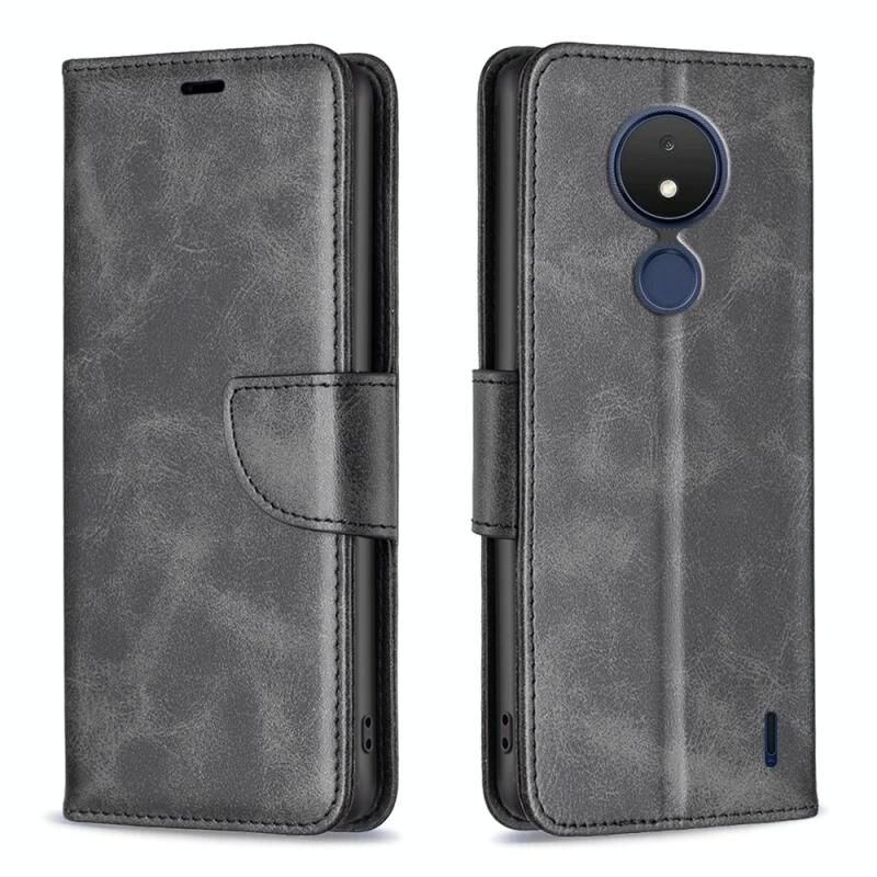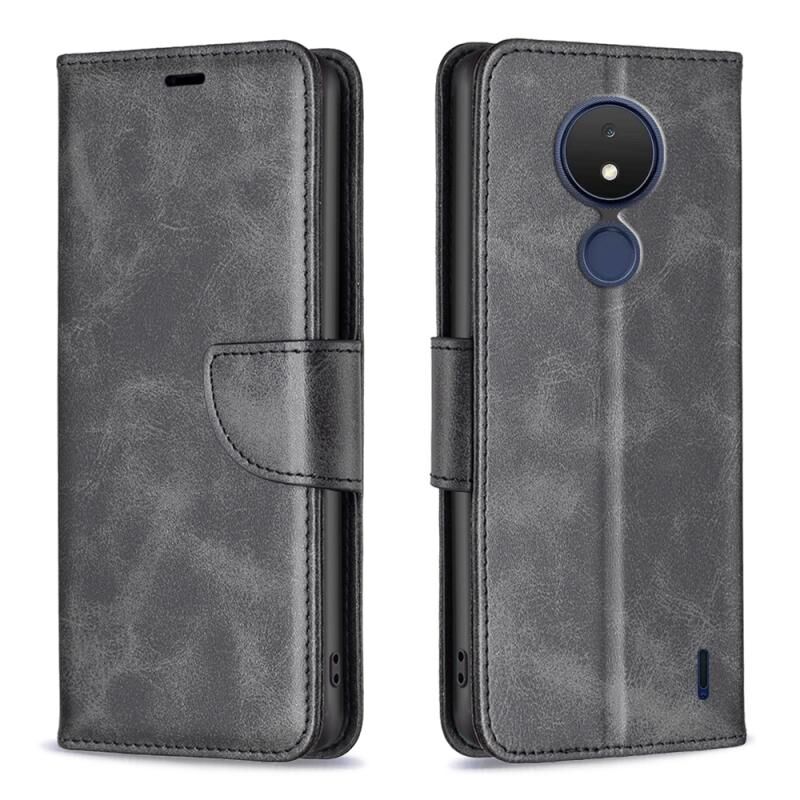Για Nokia C21 Θήκη τηλεφώνου από δέρμα με υφή αρνίσιου δέρματος (μαύρο)